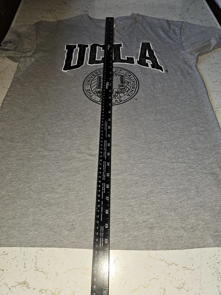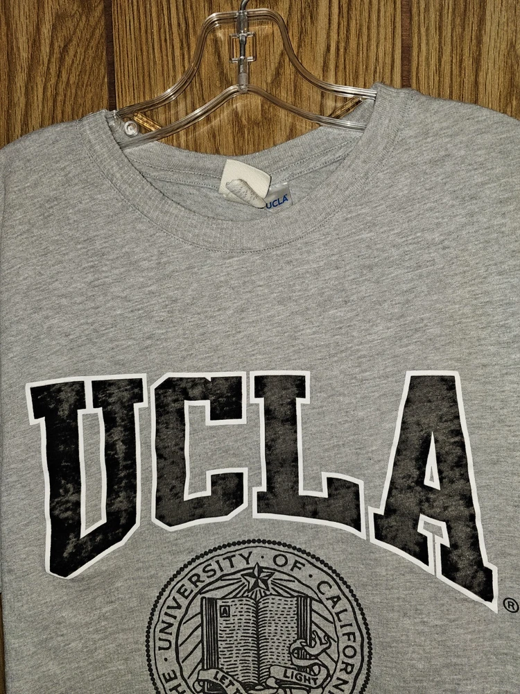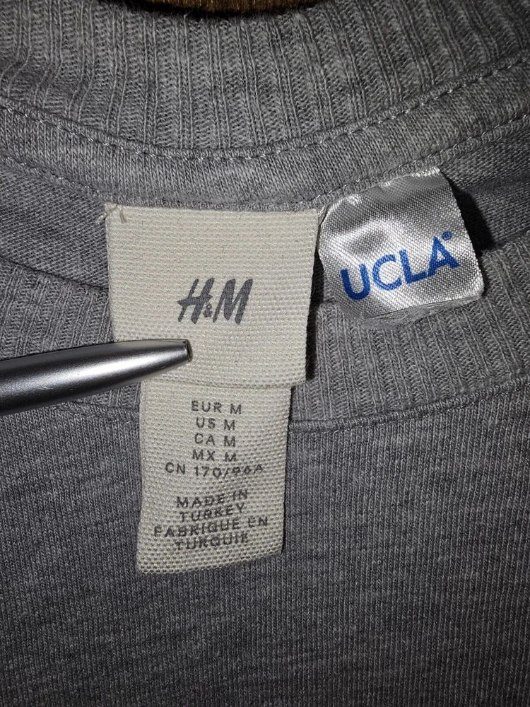 Elevate your game day attire with the H&M X UCLA Collaboration Men's Gray Graphic Logo T-Shirt. Designed for fans of the UCLA Bruins, this medium-sized shirt is perfect for showing your team pride during the regular season and beyond. The soft, gray hue is versatile, making it an ideal choice for any casual occasion. Officially licensed by the NCAA, this tee features bold graphics that celebrate your favorite collegiate football team. Crafted with quality fabric, it's a comfortable and stylish addition to any fan's wardrobe. Whether you're at the stadium or just out and about, this T-shirt is sure to be a go-to in your collection.