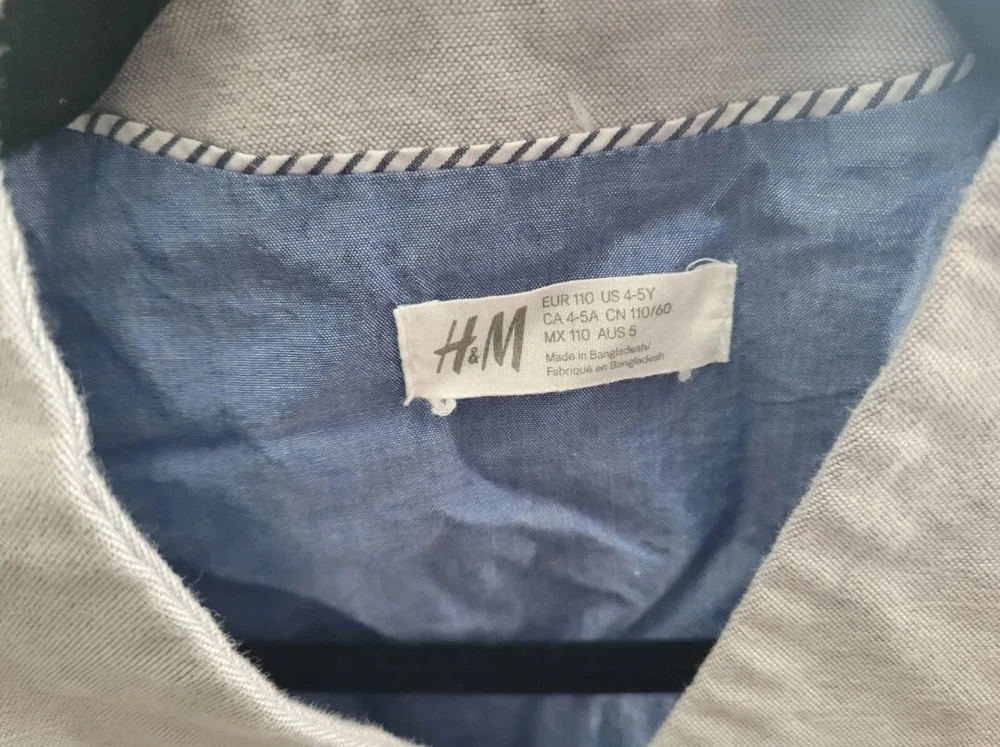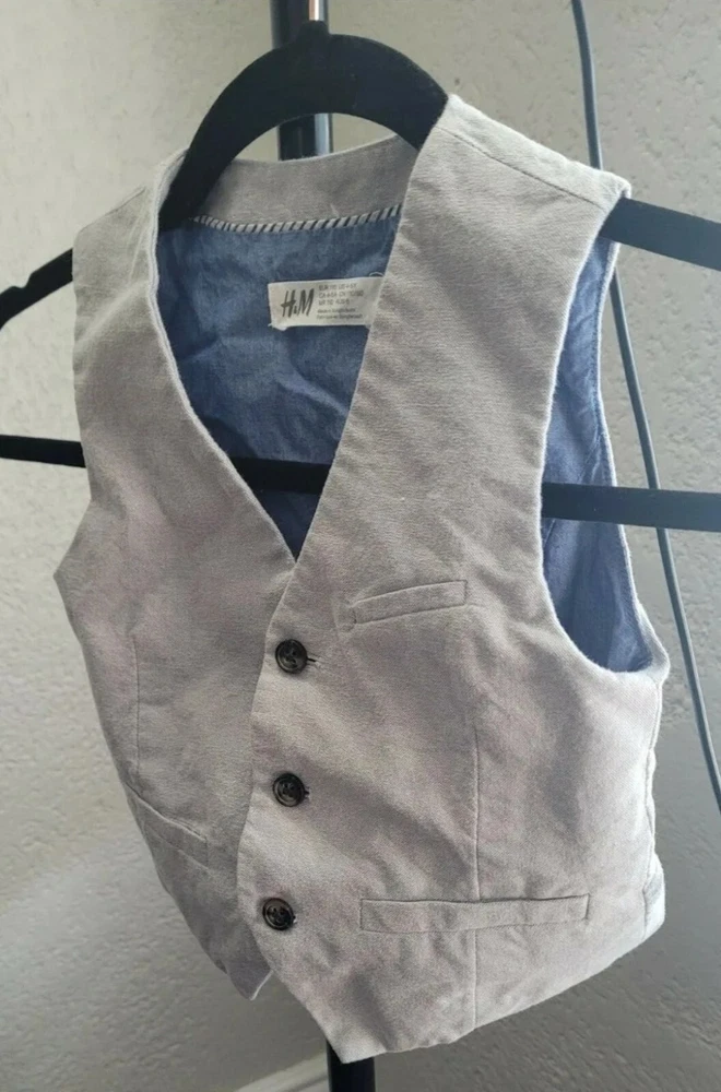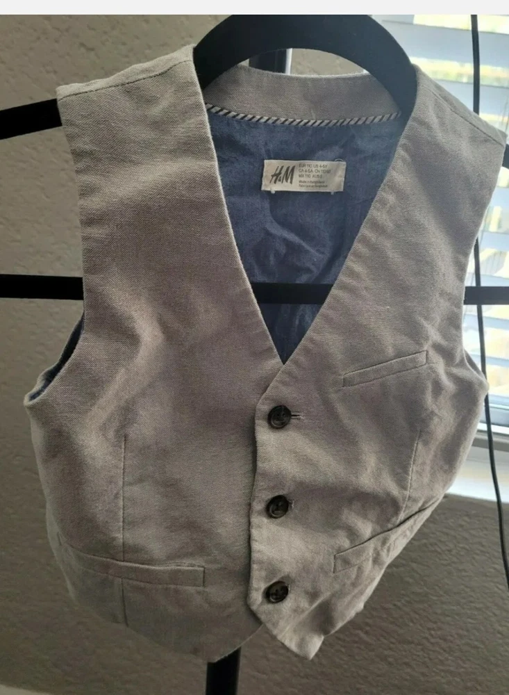 H&M baby vest US light grey 4-5y 5t mocked front pockets lined & buttons polyest.