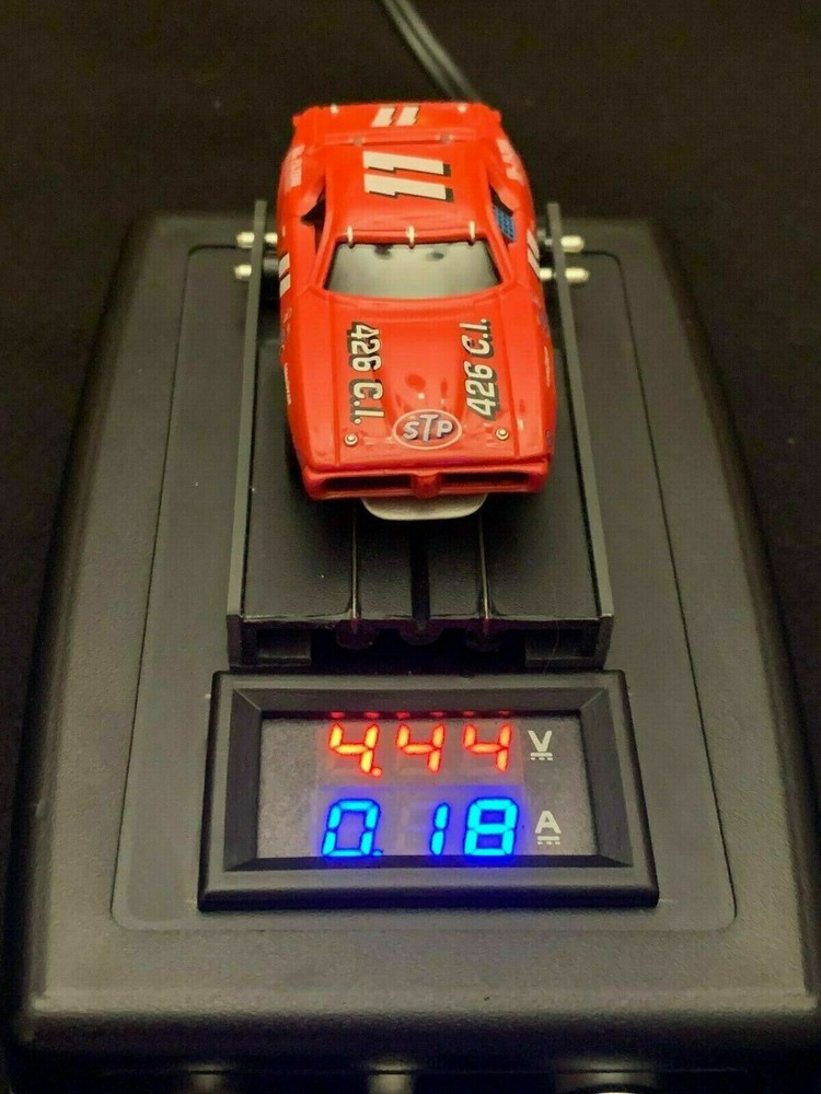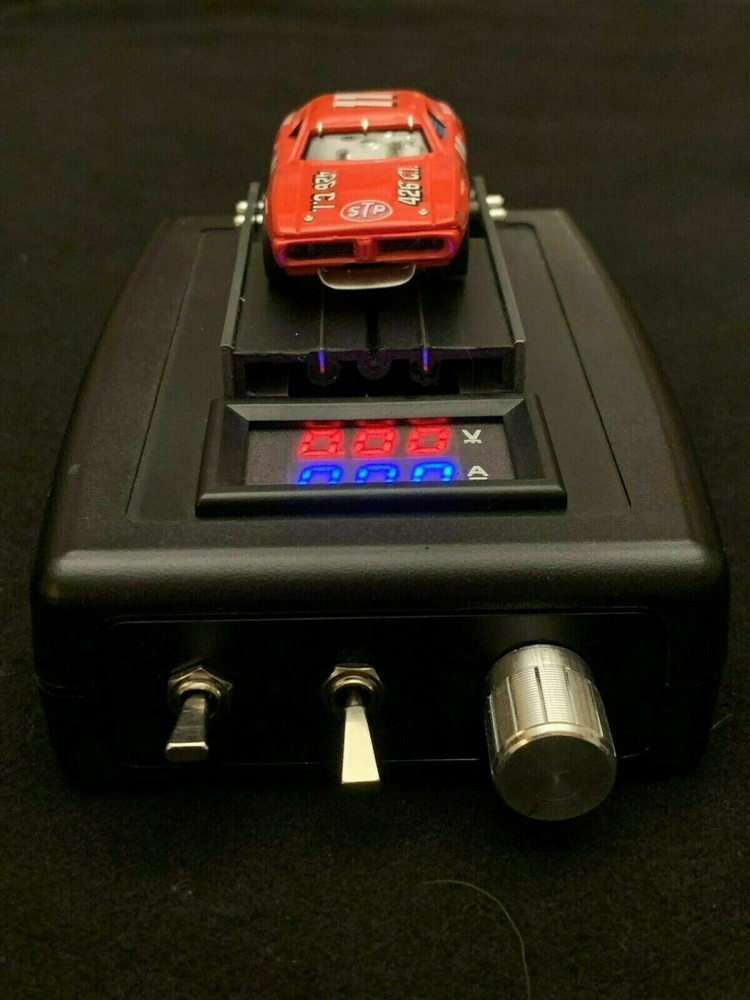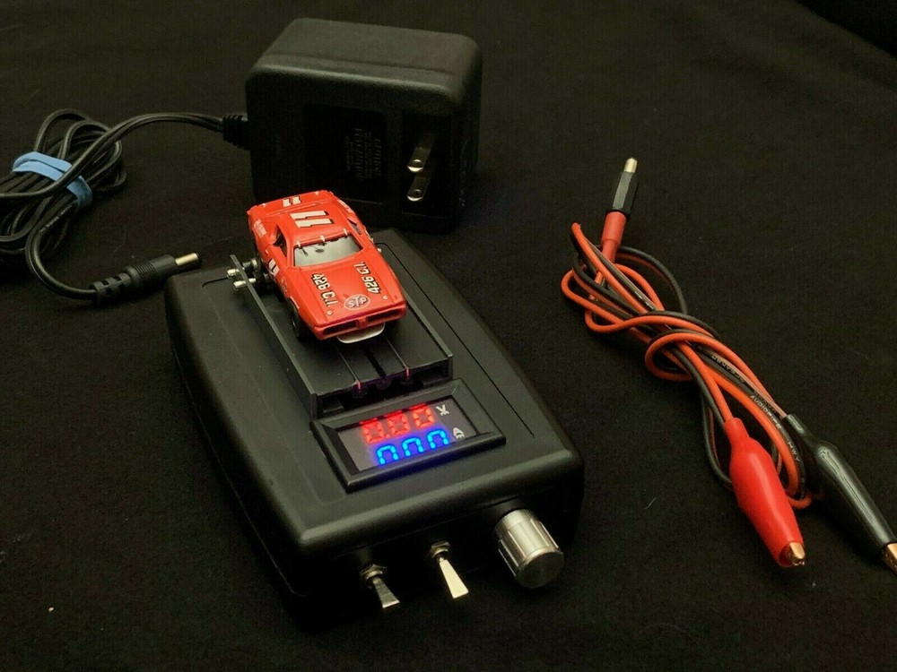 This listing is for one of my HO 1/64th scale Slot Car Dynos. It has the ability to test and break in a slot car with adjustable Voltage. The Unit is powered by a DC power supply, (included). It also comes with a cable for you to connect to your own Power supply if you wish. The Dyno uses a Pulse Width Modulator to adjust the voltage by using the knob. The digital readout shows Voltage and Amperage to the car. The display is powered by a 9v battery (included). The track receives power from the rear of the unit via the power supply or your own power supply. There is an On/Off switch for the Display as well as a Stop and Go switch for the track. The Rollers for the Slot cars rear wheels are made with 4 Stainless Steel roller bearings each. Power Supply may vary from pics. Feel free to ask me any questions you may have. The car is NOT INCLUDED and simply in the pics so you can see the size of the unit and how it works. The Unit does not calculate Scale Horsepower or RPMS! If you have any questions, feel free to contact me before purchasing. SEE MY FEEDBACK AND BID WITH CONFIDENCE!