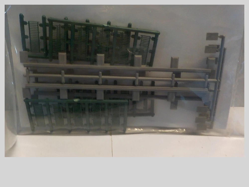 this is new in pack includes 4-50ft. scale wrought iron railings & concrete pillars i do combine shipping & tracking # is included