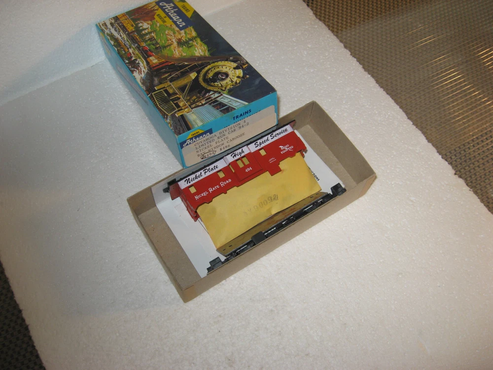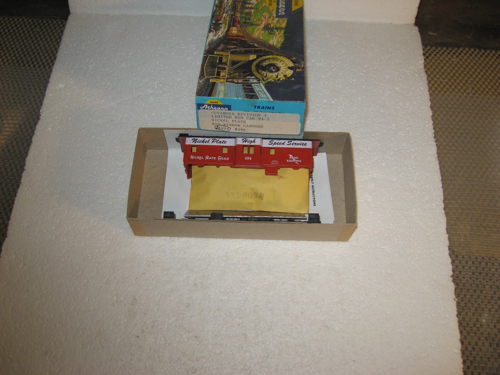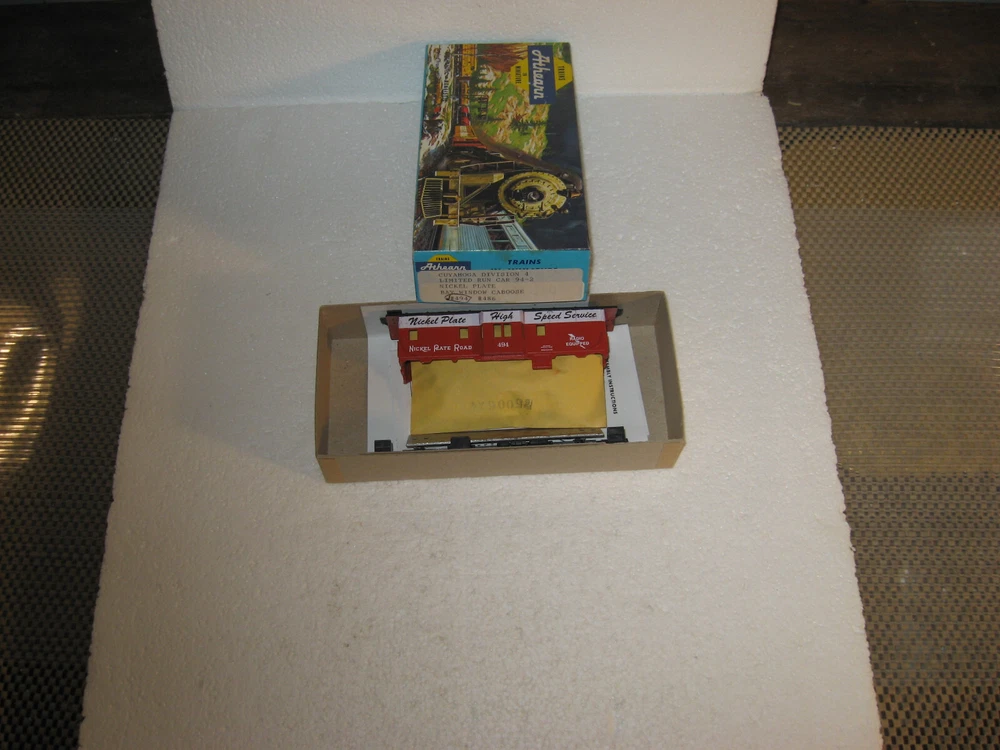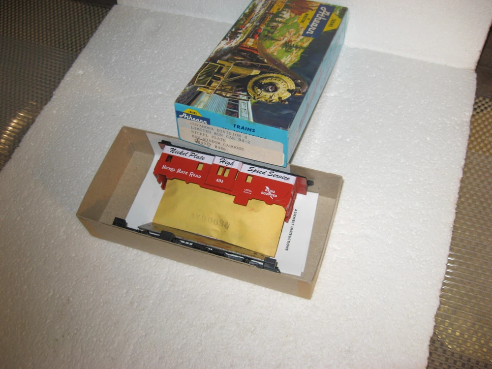 HOWDY FOLKS! THIS IS THE HO SCALE ATHEARN AND CUYAHOGA DIVISION 4 CUSTOM,LIMITED RUN NICKEL PLATE ROAD BAY WINDOW CABOOSE KIT! ORIGINAL BOX HAS NUMBER 494,CABOOSE NUMBER IS THE SAME 494. THIS KIT IS COMPLETE CHECKED BEFORE LISTING AND BEFORE SHIPPING WITH INSTRUCTIONS. PLEASE CHECK ALL PICTURES AND ZOOM RIGHT IN THERE! ONLY $25.00 AND YOU CAN BUY IT NOW IF YOU WISH TOO. ADD IT TO YOUR COLLECTION OR LAYOUT. WE COMBINE SHIPPING ON ALL OUR ITEMS.IF YOU NEED ANYTHING PLEASE DON,T HESITATE AND ASK! JUST USE THE CONTACT SELLER ON TOP OF THE LISTING ON EBAY EMAIL. THANK YOU AND TAKE GREAT CARE NOW!