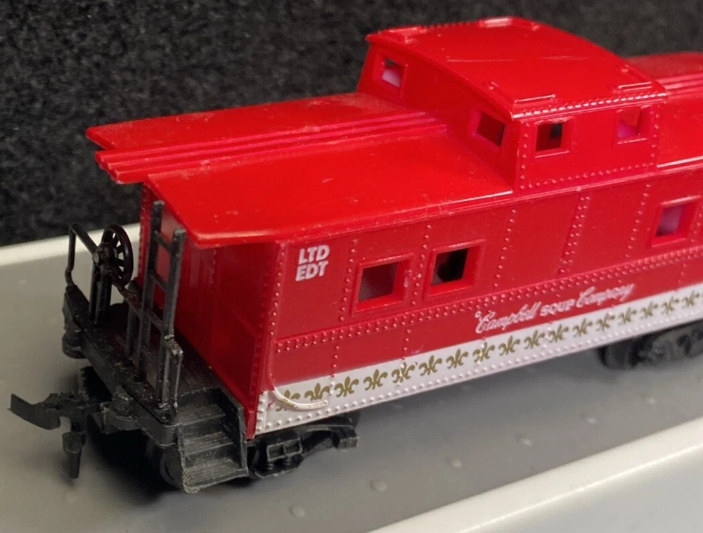 Preowned not perfect still looks good. The HO Scale "Campbell Soup Company - Limited Edition" Freight Train Caboose #3 is a vintage model manufactured in 1982 by Life-Like Products. This limited edition caboose features a red and white color scheme, replicating the iconic Campbell Soup Company branding. It is designed with a two-rail system, AC power type, and digital control system, making it suitable for collectors and model railroad enthusiasts. This highly detailed replica in 1:87 scale is recommended for ages 8 and up, offering a unique addition to any transportation-themed model railroad layout.