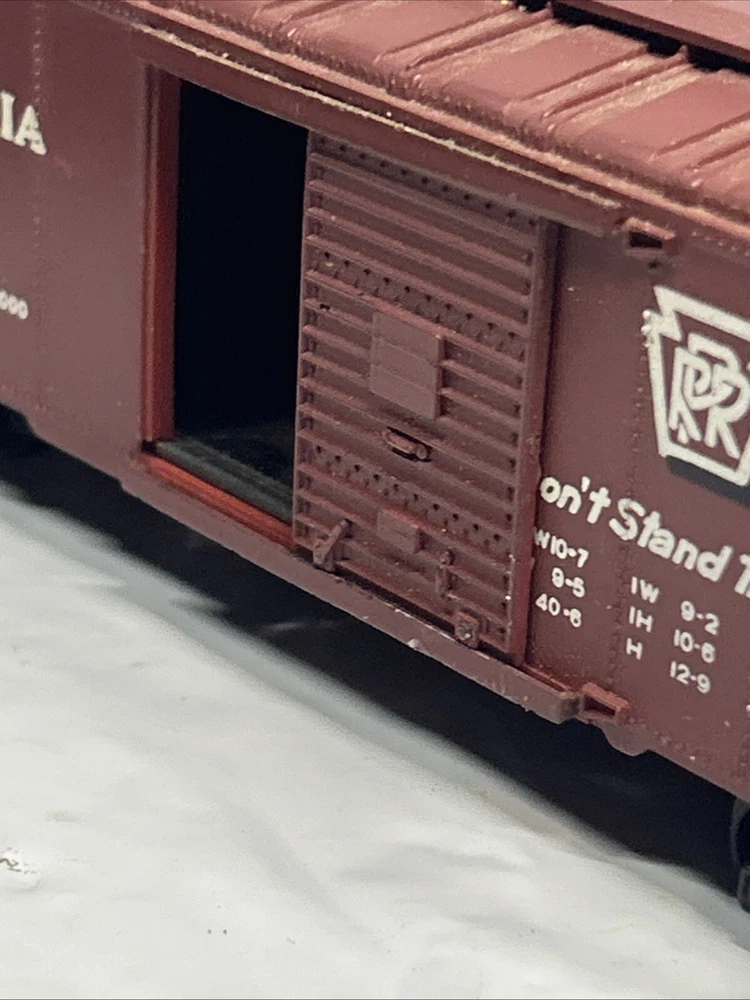Color:BrownReplica of:PRRMaterial:PlasticTheme:TransportationAssembly Status:Ready to Go/Pre-builtBrand:UnbrandedUPC:Does Not ApplyGauge:HOMPN:NAVintage:YesRail System:Two-Rail SystemType:Box CarCountry/Region of Manufacture:UnknownAge Level:8+Scale:1:87gtin13:Does Not ApplyFranchise:Pennsylvania RailroadFeatures:Advertising Specimen, Hook Horn Couplers, Sliding side door panelsControl System:Analog