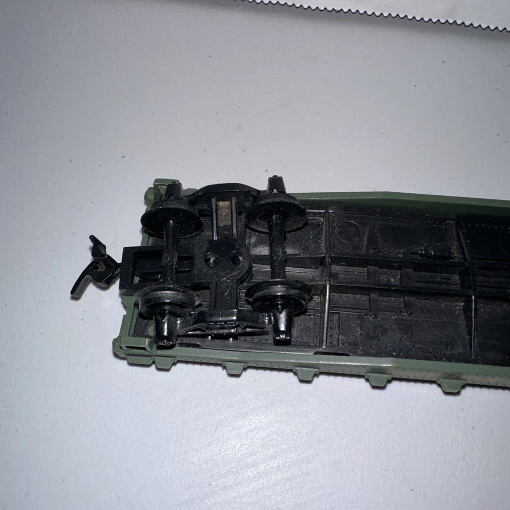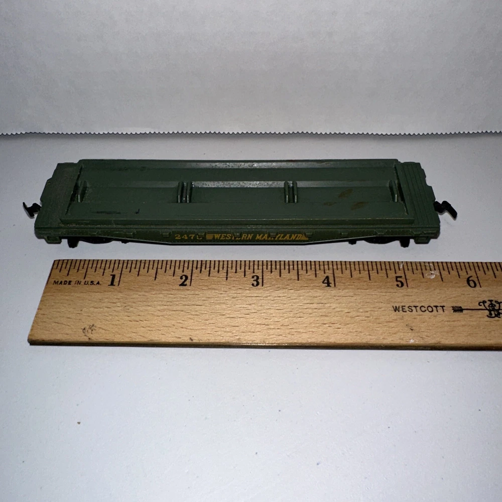 HO Scale, TYCO, 2475 WESTERN MARYLAND, Green, Sectioned, Flat Bed Rail Car. Condition is Used. Shipped with USPS Ground Advantage.
