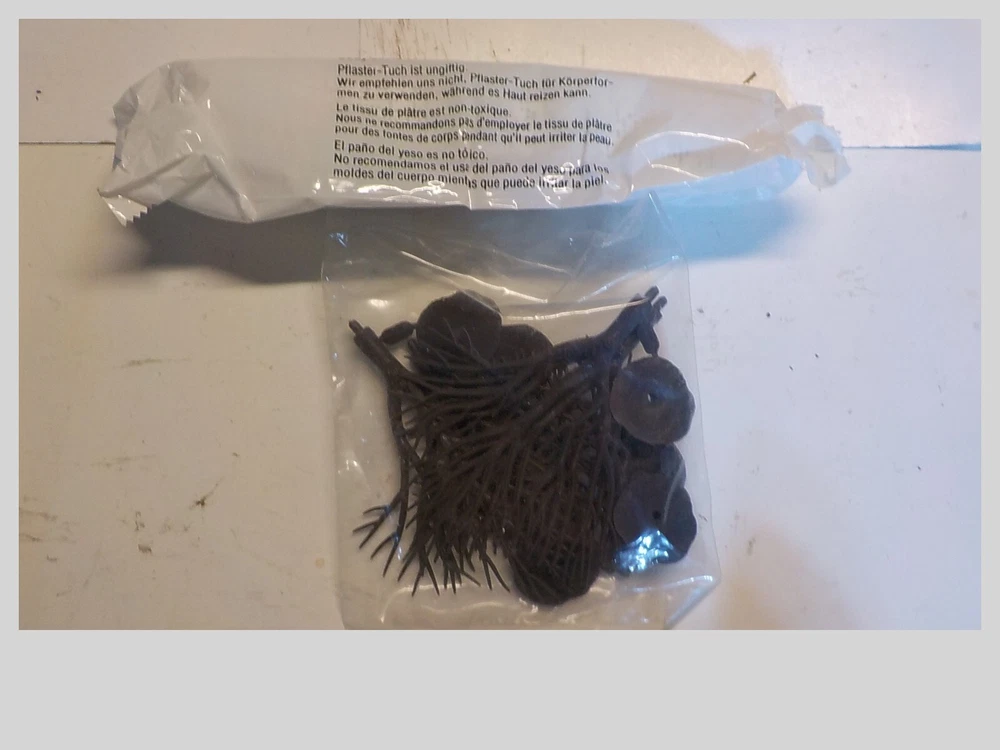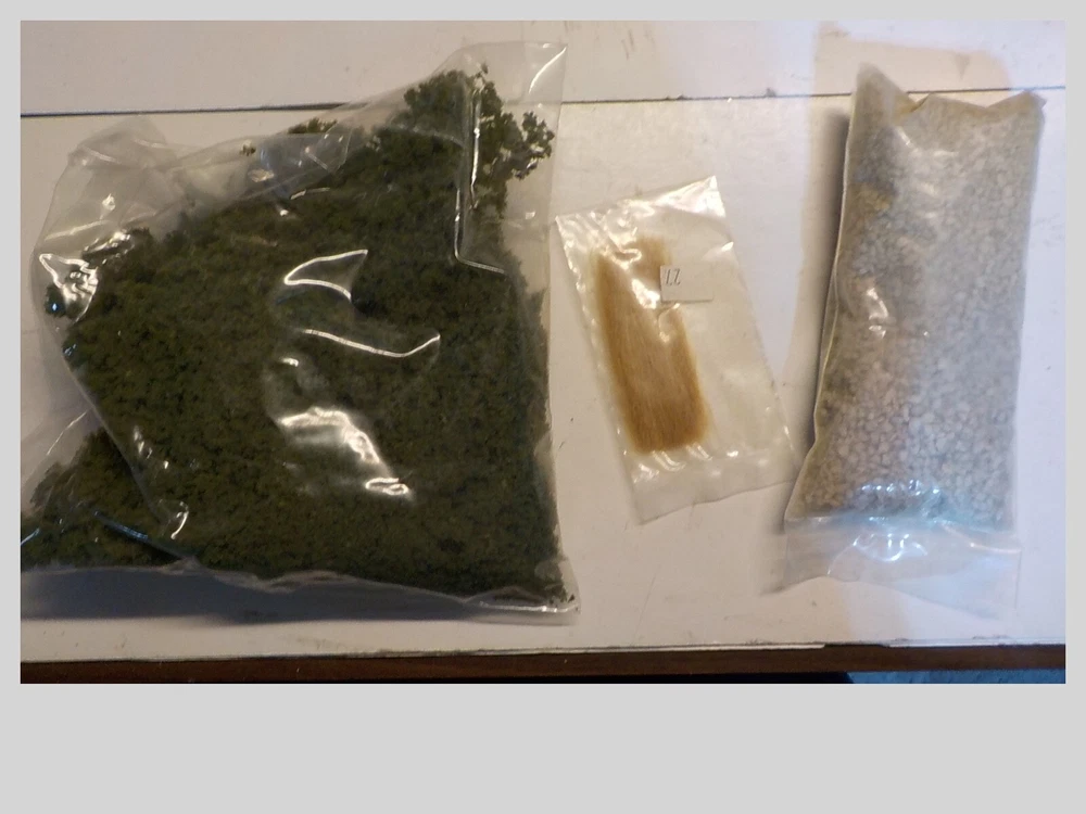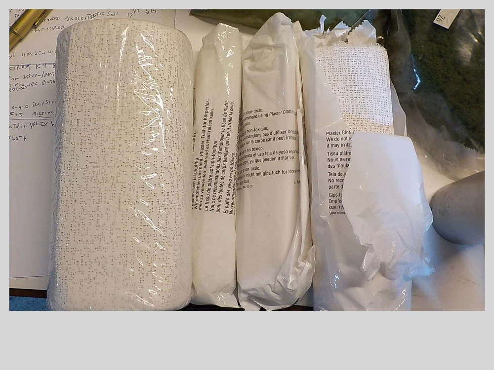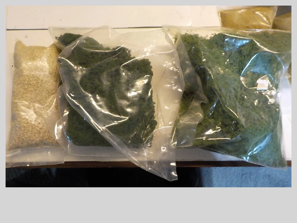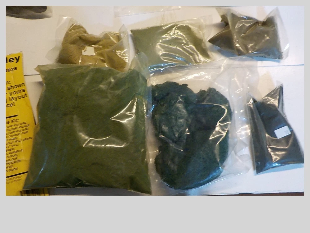 loads of plaster cloth rock mold spray head stirring sticks 10 bags of forage & turf rock debris book of instructions lightweight hydrocal tree trunks bag of old trees ( flocking is cominoff of these) the box is 9 pounds