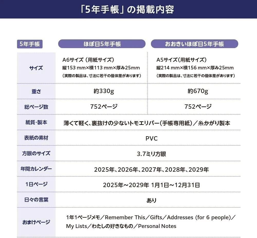 HOBONICHI A5 Notebook 2024 Large 5 Year Notebook 2024-2028 newz japan