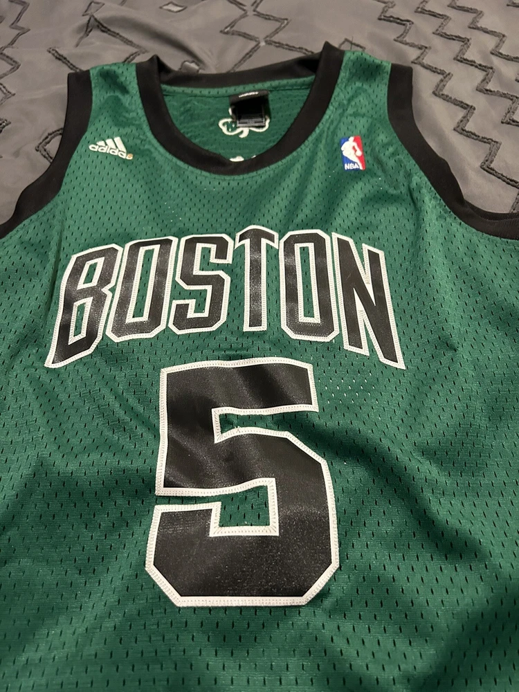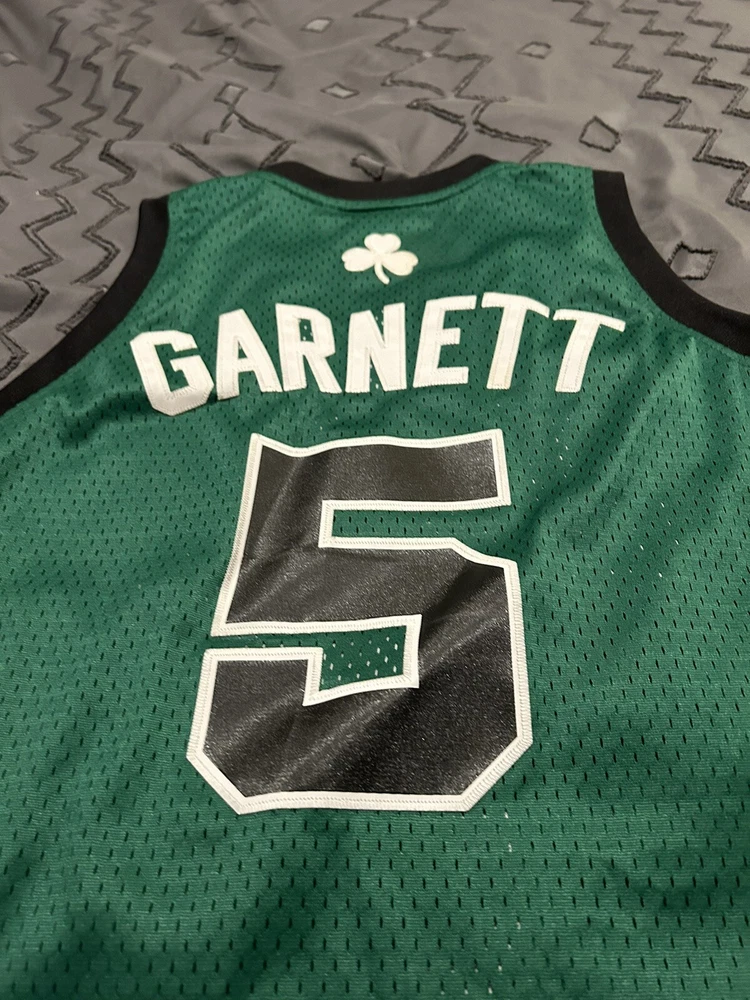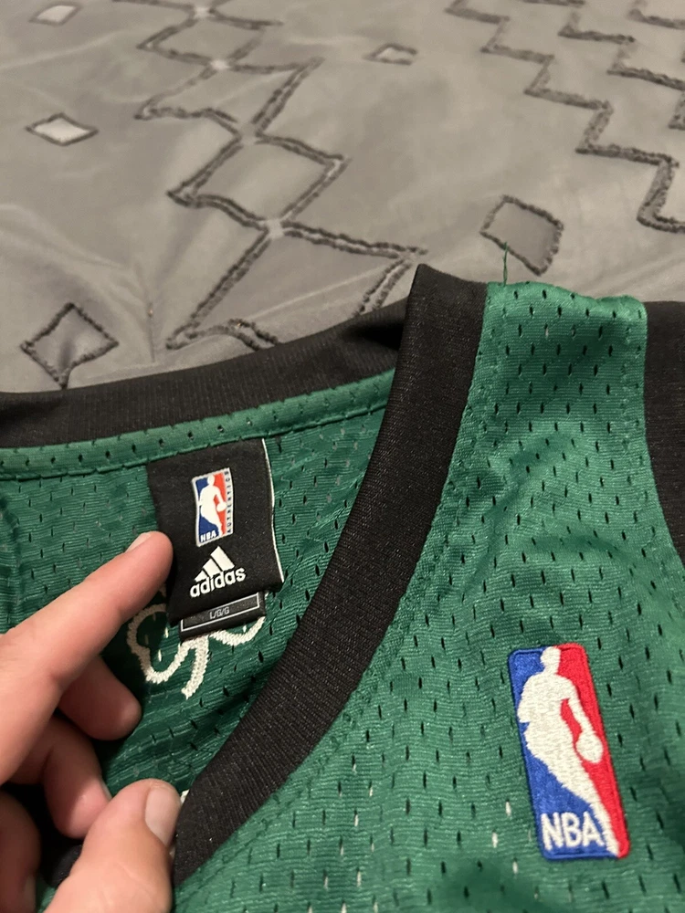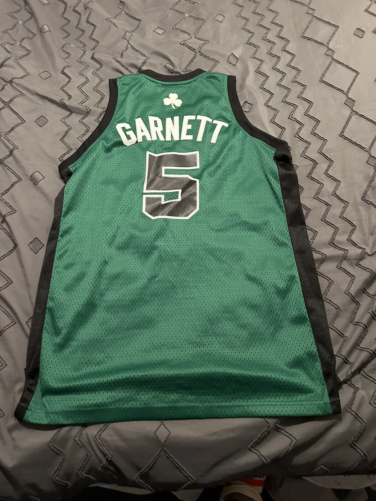 Show your love for the Boston Celtics and Kevin Garnett with this officially licensed NBA jersey from Adidas. Made for men in size L, this green jersey is perfect for basketball fans who want to represent their favorite team during regular season games. The jersey features the Adidas brand and the player's name and number on the back, making it a must-have for any true fan. Whether you're cheering from the stands or watching from home, this jersey is sure to make you feel like a part of the team.