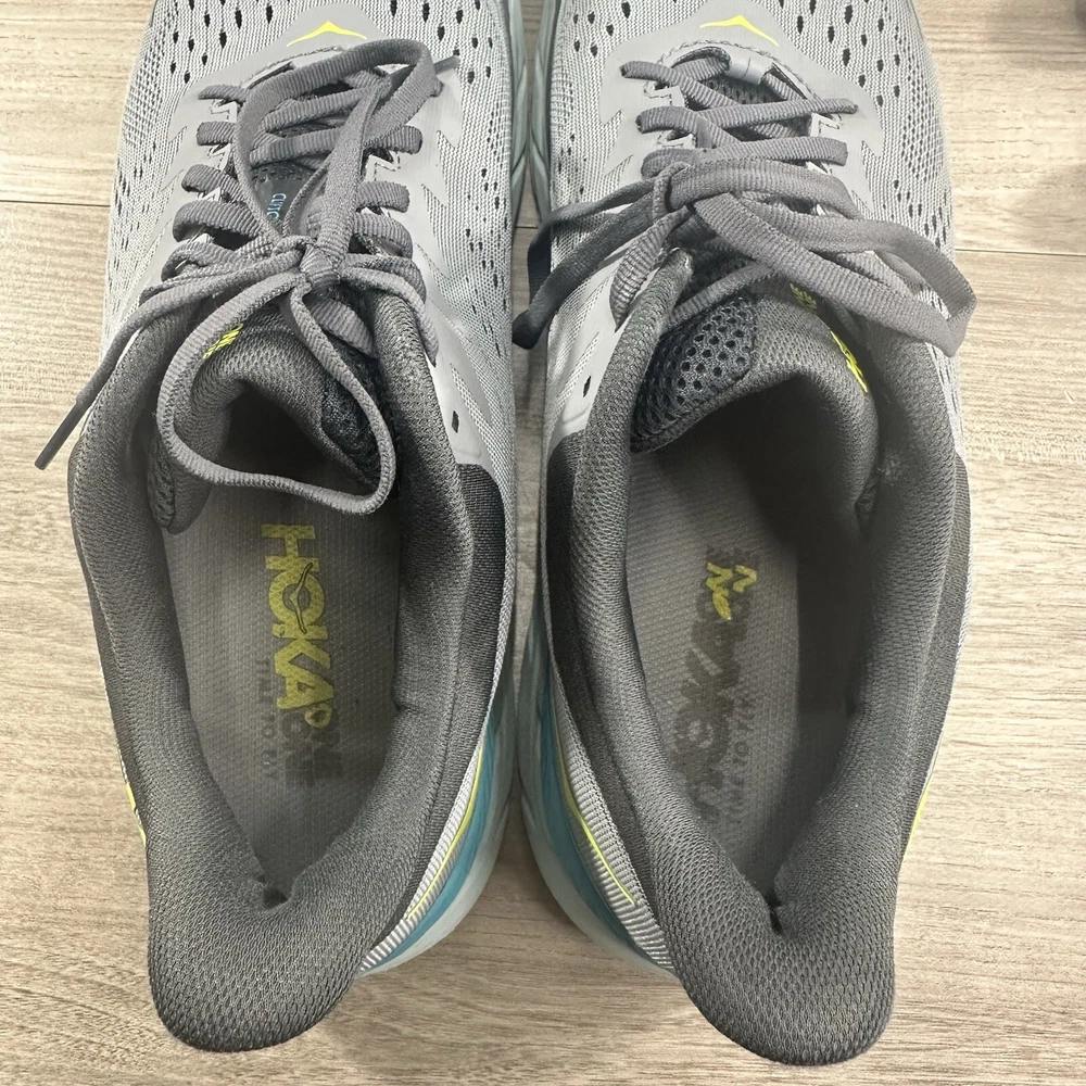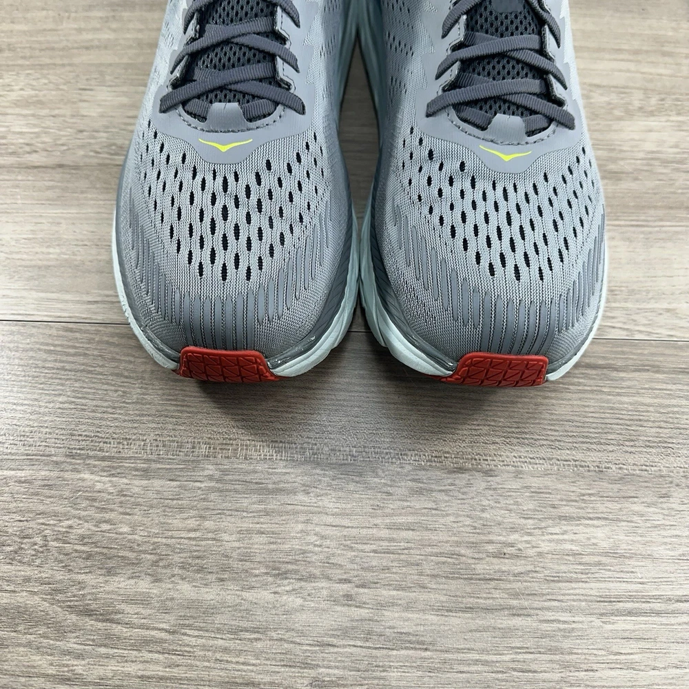 Elevate your running experience with these Hoka One One Clifton 7 sneakers in a stylish gray and blue colorway. Designed for both performance and comfort, these shoes feature a cushioned, lightweight, and breathable design with a rubber outsole for optimal traction. The synthetic upper material is paired with a foam insole for added support and stability during any activity, whether it be running, cross-training, or gym workouts. With a lace-up closure and low-top shoe shaft style, these shoes are perfect for any occasion, whether you're hitting the activewear or casual wear category. The Hoka One One Clifton 7 sneakers are a classic addition to any sports-themed wardrobe and are sure to make a statement with their colorful and wolf-inspired design.