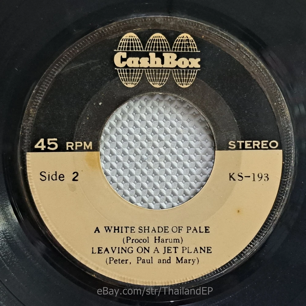 Welcome to The World of ""Thailand Vinyl Records"".Very rare and beutiful picture of cover. Check everyday . This item is for a true 7" single collector. It was printed and sold locally as limited EP back in the early 70's. Only few copies were spread outside Thailand. Most professional record collectors know that it is scarce nowadays and is absolutely a collector's item. If you know a UK magazine called RECORD COLLECTOR then you must have read many articles mentioning THAILAND EP and this is it !!! Here is your chance to own one-of-a-kind piece of Asian's 7" single history. Description Records !!! DETAIL SONG and ARTIST !!! Side A: A1 = Hollies - He Ain't Heavy, He's My Brother / A2 = Skeeter & Bobby - Let It Be Me Side B: B1 = Procol Harum - A Whiter Shade Of Pale / B2 = Peter, Paul And Mary - Leaving On A Jet Plane Label&Catalogue number : : KS193 Country of release : THAILAND Condition (Sleeve/Disc) : VG / EX and pls see picture too. Shipping I am seller in Thailand not USA.So I can not ship 4$ as policy pls understand this real rate from oversea . Price for shipping(Airmail )&Packaging to worldwide only US 14.99 USD .Except Asia and JAPAN only 14.99 USD. You can save cost for combine shipping only 3 USD$ per each. 2xEP=17.99 USD$ , 3xEP=20.99 USD$ . My package very safety by big cardboard don't worry about your's EP/PS/LP. Time delivered 21-45 days . ***All item : have tracking system no need add money*** **For normal shipping (Airmail).Time delivery to ITALY maybe use 1-2 Months, France use 1-2 Months.But Don't worry item will arrived to you sure!!.For fastest and High value you can use Express Mail Service cost for1 EP =39 USD.EP will arrived to you within 5-7 Days. ***All shipment have fully tracking system *** Payment PAYMENT : I accept the follow payment by eBay managed , . My ID eBay provide by eBay .Account will be provide at the end auction.Charges to be covered by winner. If you have question pls email to me anytime i can answer immediatly. I have many EP,PS 7" Thailand Pls Click => View seller's other items Check my feedback , I care and honest all customer.I welcome 0 feedback but contact me first if you will bidding. Good Luck !!!! and Enjoy . 45 RPM / EP/ LP Grading Scale: Mint /NM/ Excellent(VG++) /VG+/ VG /G+ /Good(G) / Fair / Poor / Bad (According Record Collector Magazine (UK)) LOT162-18KS193