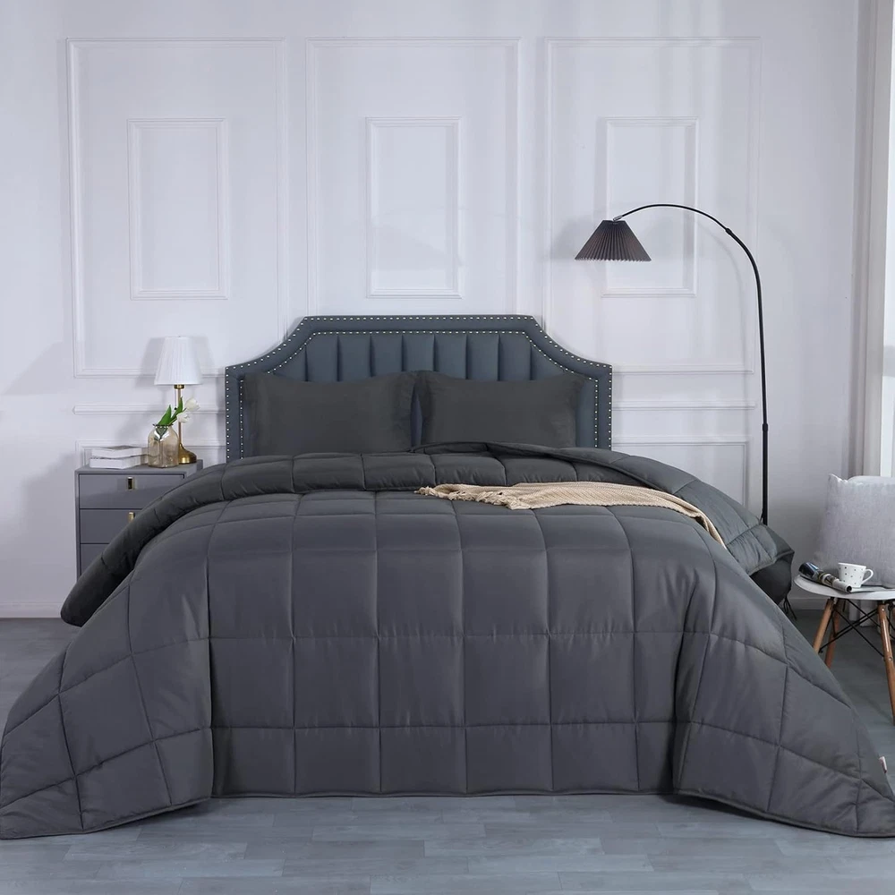 Store New Arrivals Add to Favorite View Feedback Contact HOMBYS Oversized King Comforter 136 X 120, Alaskan King Size Bed Comforter, Extra Large down Alternative Comforter Duvet Insert for All Season with Corner Tabs Description Style Modern Weave Type Plain Number of Items 1 Pattern Solid Country of Origin China Blanket Form Comforter Theme Plain Brand HOMBYS Unit Count 1 Count Product Dimensions 136"L x 120"W Material Polyester Age Range (Description) Adult Seasons All Manufacturer HOMBYS Water Resistance Level Not Water Resistant Item Weight 11.29 pounds Fill Material Polyester Special Feature Breathable Fabric Warmth Description Heavyweight Color Grey Recommended Uses For Product Napping Fabric Type 100% Polyester Product Care Instructions Machine Wash Size Alaskan King-136" x 120" 【Unique Alaskan King Size】11x10 Feet Oversized King bed comforter can cover whole mattress and hangs over the bed edge perfectly, you don't need to have a bed skirt for tall box spring bed. Long and big enough, no longer have to play tug of war all night with partner to stay covered up anymore.Fits for Alaskan King, California King ,King Bed 【All Season Oversized King Comforter】premium polyester fiber filling, perfect for year round use. 7 Hollow high hydrophilic fiber filling technology traps the air and locks-in the warmth.It feels fluffy and cozy,just feels like you are sleeping inside a cloud.Elegant Box stitch Sewn Through design secure the filling in place, prevent filling shifts and bunches up. After many washing test, the comforter still keeps fluffy and warm. MACHINE WASH, say goodbye to clean trouble. 【Goodnight Promise】 Made of brushed microfiber cover, which is super soft and breathable to provide you with a noise-free, ultra-comfortable night's sleep. The high quality and evenly distributed filling makes the comforter light and fluffy, you won't feel the pressure of the comforter, and it will bring you a comfortable sleep all night long.. 【Box Stitching and Corner tabs】The classic box stitching technique prevents the filling from shifting or leaking and distributes it evenly for long-lasting insulation. With 8 corner tabs, you can easily add duvet covers to hold the comforter in place. 【Easy Care】 Machine wash separately in cold water, sun dry or tumble dry low when needed, no shrinkage, no fading, saves you a lot of time and effort. Do not bleach. Product Description The video showcases the product in use. The video guides you through product setup. The video compares multiple products. The video shows the product being unpacked. 1 Breathable 2 Soft Fabric 3 Cloud Like Filling 4 Corner Loops 5 Material Information ABOUT US We offer the best prices around on high quality products. Our E-store includes media such as books, movies, music and games while offering electronics, toys, sporting apparel, clothing, tools, general home, garden items and more. SHIPPING We are always working hard to ensure your package arrives as soon as possible. Please understand that some factors like weather, high postal traffic, and the performance of shipping companies are outside of our control. We offer free shipping to the lower 48 states and ship within 2 business days of payment, usually sooner. We do not accept P.O. Boxes. Please provide a physical address. RETURNS We offer a 30-Day Return Policy on items which you are not completely satisfied with. You have the option for a full-refund or an exchange of the item. No returns are available on items shipped outside of the USA. PAYMENT We accept PayPal. CONTACT US This page content is yet to come Please ad us to your favorite seller and visit again later Thank You CUSTOMER SATISFACTION We try our very best to make sure every customer is completely satisfied. If there's a problem, message us! We're happy to help.