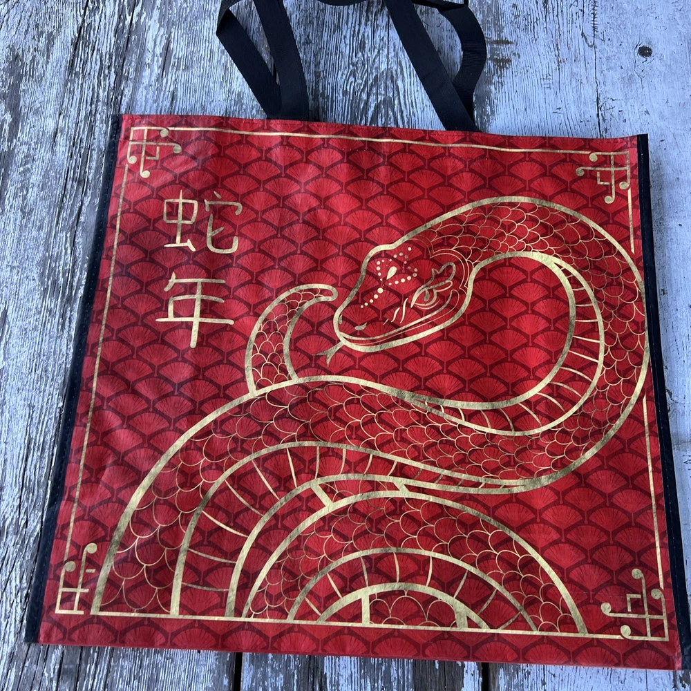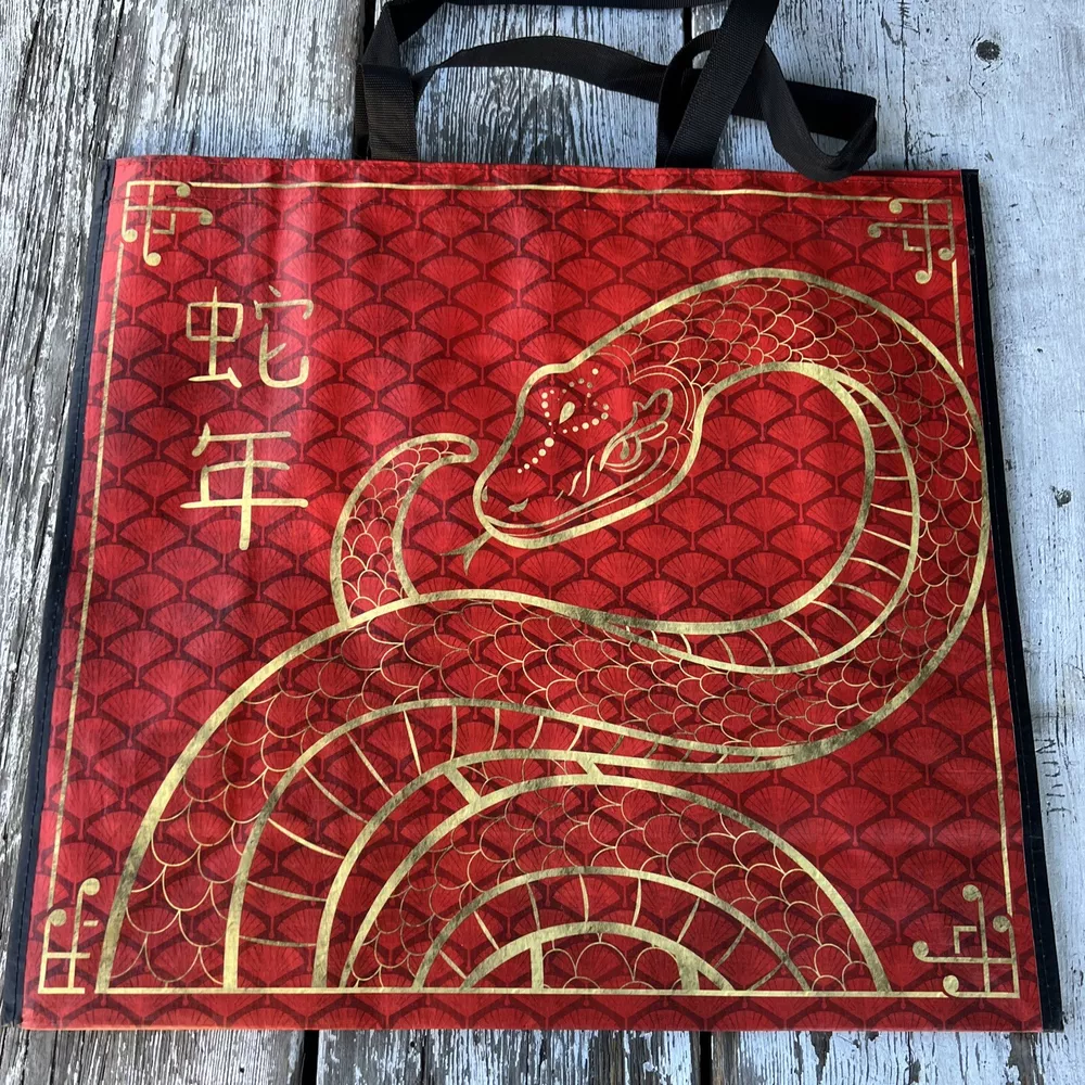 HOMEGOODS Shopping Bag Reusable Big Tote Spring RED SNAKE 🐍HAPPY NEW YEAR❗️