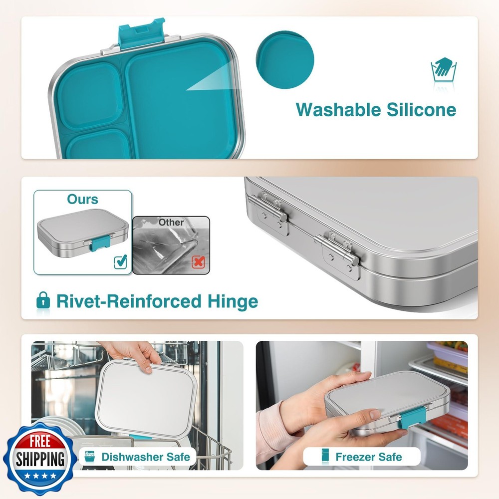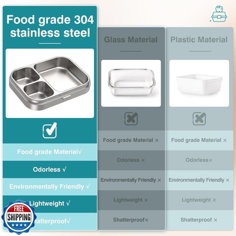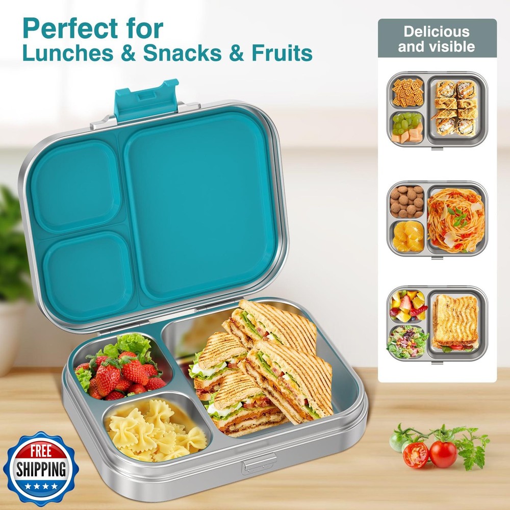 HOMEKOL Stainless Steel Bento Lunch Box Kids, 3 Compartments Metal Bento Box Container for Kids Adults, Leak-Proof Lunch Box for Office, Dishwasher Safe, BPA-Free, Blue Features 3-Compartment Design: Fits a full meal: Big 17 fl oz (500ml/2.1 Cups) main + Two 5 fl oz (150ml/0.6 Cups) sides. Holds salads, sandwiches & more—keeps flavors separated, slides into any bag. 100% Leakproof Guarantee: Silicone-sealed lids clamp tightly on all compartments—zero spills, zero flavor mixing. No more messy backpacks! Food-Safe & Battle-Proof: Restaurant-grade 304 stainless steel—stain/rust-resistant + 100% non-toxic silicone seals. Daily-use durable, no plastic toxins! Effortless Clean, Dishwasher-Friendly: Toss it on the top rack of your dishwasher. Silicone stays intact—no odor retention, no scrubbing. Eco-Warrior Approved: Ditch disposable plastics! Reusable steel reduces waste—pack 300+ trash-free lunches/year. Lifetime Support Promise: 1-year no-hassle warranty + 24/7 customer heroes. Got issues? We fix/replace it—no forms, no delays. Shipping Free & Fast Shipping: We offer free shipping to most of the USA with a normal delivery time of 3-7 days. However, due to the current situation, additional delivery time (up to 3 weeks) may be required for some items. Alternative Carriers: We may use alternative carriers (e.g., USPS, FedEx, UPS) to ensure your package arrives safely and on time. Due to the use of multiple carriers, we are unable to provide a tracking number automatically. Handling Time: Orders are processed and shipped within 1-2 business days of receiving cleared payment. Shipping Restrictions: Shipping to Alaska, Hawaii, Puerto Rico, Guam, and other US territories may incur shipping charges or delivery restrictions. Please contact us before ordering, or your order can be refunded/cancelled. State Restrictions: Certain items may not be shipped to California due to state regulations. Contact for Tracking Updates: If you require tracking updates or have any concerns about the delivery of your order, please feel free to contact us, and we will be happy to assist you. Return Policy 30-Day Hassle-Free Returns: If you are not completely satisfied with your purchase, you can return the item for free within 30 days of receiving it for a full refund or exchange. Easy Return Process: Contact us, and we will provide you with a prepaid return shipping label and detailed instructions. No Restocking Fee: There are no restocking fees for returns. However, the buyer is responsible for return shipping costs if the return is not due to a seller"s error. Refund Processing: Refunds will be processed within 1 business day of receiving the returned item in its original condition. Feedback Your feedback is extremely important to us. We strive to provide the best products and customer service possible. If you are satisfied with your purchase, please take a moment to leave us a positive review. If you have any concerns or issues with your order, please contact us before leaving negative feedback. We are committed to resolving any problems and ensuring your satisfaction. Contact Us If you have any questions or concerns, please feel free to reach out to our customer support team. You can contact us through the eBay messaging system. We are available Monday to Friday, 9:00 am to 5:00 pm EST, and we will do our best to respond to your inquiry within 24 hours. Thank you for supporting our small family business!
