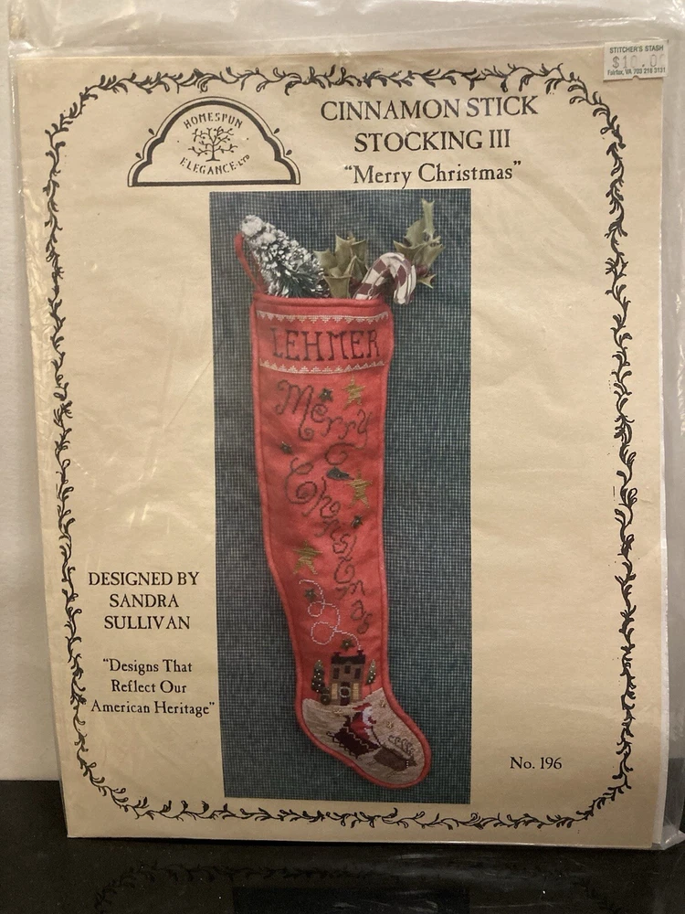 HOMESPUN ELEGANCE CINNAMON STICK STOCKING III "MERRY CHRISTMAS" NEW! XMAS