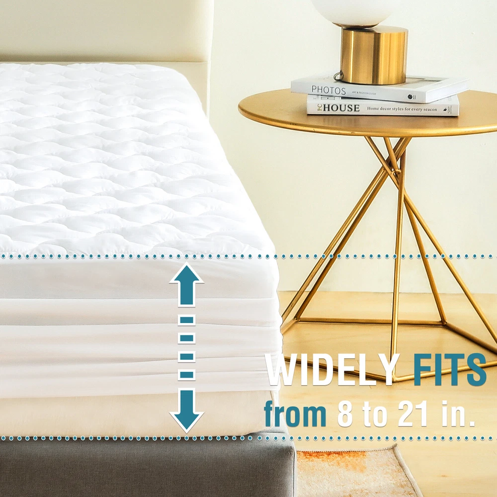 Description Twin: 39" x 75" TwinXL: 39" x 80" Queen: 60" x 80" King: 78" x 80" Full: 54 x 75" 100% WATERPROOF & SLEEP WITH NO WORRY Mattress Protector: LINENS mattress pad 100% waterproof TPU membrane, protecting your mattress from all kinds of fluid accidents, like perspiration, urine or drinking. Perfect potty training mattress pad protection for kids, elder or pet. No need to worry about spilt drinks or bedwetting stains when using our mattress protector. SOFT & COOLING BED MATTRESS PAD: LINENS waterproof mattress pad is cushiony fill features moisture-wicking fibers that helps to keep you cool and dry for a better night’s sleep. ( with 6oz of polyester fiber filled mattress protector).Equipped with our mattress pad protector,the bed will be a place you're not willing to leave. DEEP POCKET & 360°FULLWRAP DESIGN Mattress Protector: With deep pocket fitted mattress design, you can easily stretch the 85GSM Single-track elastic fabric of this mattress protector to 18 inches and surround the mattress in 360-degree to Avoid Moving!We use high-quality elastic band in the mattress pad to hold your mattress firmly in place,and the stretchable fabric makes the mattress pad easy to use. SKIN FRIENDLY Mattress Protector: Our quilted mattress pad is made of premium polyester on the surface, which is not easy to get pilling.And the TPU waterproof film is directly made on the bottom of the 6" classic moroccan style quilted to ensure that dust is trapped inside the mattress and the mattress protector has waterproof effect. The mattress pad cover is vinyl-free and ideal for children and the elder. EASY CARE Mattress Protector Pad:Cleaning the mattress pad is a simple task.Machine wash mattress protector in a commercial size front loading washing machine with warm water and mild detergent. Do not bleach, and natural drying LINENS mattress protector. TIP: After unwrapping, air our mattress pad for 24 hours to get a fluffy touch.Please click the “Add" button and purchase our waterproof mattress pad NOW!