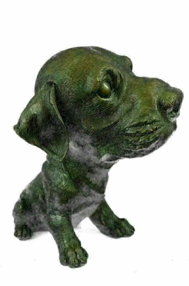 HOT CAST BRONZE DOG FIGURE SCULPTURE LAB LABRADOR RETRIEVER SIGNED MOORE FIGURE HOT CAST BRONZE DOG FIGURE SCULPTURE LAB LABRADOR RETRIEVER SIGNED MOORE FIGURE Condition : This sculpture is in perfect condition. Bronze Dimensions: Height 9" X Width 9" Weight: 10 LBS Inventory: 64DW1144846 Meet the delightful Labrador puppy immortalized in this adorable bronze statue, capturing the essence of puppyhood in a heartwarming pose. The puppy sits with an expression of love and adoration, gazing up at you with big, expressive eyes that convey happiness and contentment. His eyes are shut, indicating a moment of serene joy, and his paws are sweetly positioned together in front of him, showcasing a pose of innocence and charm. Crafted with meticulous attention to detail, this Labrador puppy statue is made of solid 100% bronze, ensuring durability and a timeless aesthetic. The use of the "Lost Wax Method" in the casting process preserves the intricate details of the sculpture and adds to its artistic value. The puppy's tail curls around his leg, adding a touch of playfulness to the overall composition. Signed by the artist Moore, this bronze sculpture not only captures the spirit of a beloved Labrador puppy but also serves as a testament to the artist's skill in bringing warmth and character to the medium of bronze. With its two-toned brown patina, this statue is a charming addition to any space, celebrating the joy and companionship that our furry friends bring into our lives. Bobble Head Style Floppy Eared Dog Cute Bronze Statue Sculpture Signed Collectible 9\" x 9\" DW-114 Video will open in a new window Using the eBay App? Paste link into a browser window: [isdntekvideo] Shipping Terms : Most of our items are shipped via USPS (United States Postal Service) mail or UPS. Most orders are shipped within 24-48 hours of purchase. Please be aware that not all items are available for USPS shipping due to size and weight. We do ship to Hawaii, Alaska, Canada, Puerto Rico, APO/AE, and U.S. Virgin Islands, however, an additional charge may be required. Please contact us before making any purchases in these areas. For Non-USA customers, you may be responsible for all duty, tax, brokerage fees that may be due upon delivery (shipping costs cover freight charges only). We also ship internationally. Please refer to the "Shipping and Handling" chart for the rates for each area. Payment : We accept just about any form of payment. PayPal, Master Card, Visa or American Express credit cards. Money orders, cashiers checks, and even personal or business checks. For governmental institutions, we will also accept a purchase order. Please understand that for personal or business checks we have to wait for the check to clear (usually 7 days) before shipping. Condition : New Detailed Hand Crafted Hot Cast Bronze Satisfaction Guaranteed. This is Stock Photo, Slight Color Variation!! Listing and template services provided by inkFrog