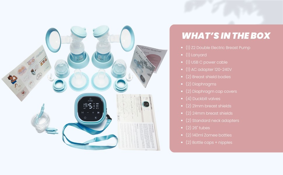 HOT DEAL!! MSSRP: $250 GREAT VALUE PACK! ALL 5 ITEMS INCLUDED!! (pump+collection cups+3 x 100 count breast milk storage bags) BOTH BOXES INCLUDED BRAND NEW!! The Zomee Z2 Double Electric Breast Pump is a convenient and efficient tool for nursing mothers. With adjustable settings and hands-free operation, it allows for easy customization and maximum flexibility. The double pumping capability and included collection cups make it ideal for efficiently expressing milk for your baby. The pump is battery-operated, making it portable and convenient for use anytime, anywhere. The sleek blue design and innovative features make it a great choice for any mother looking to simplify her feeding routine. PUMP: PORTABLE BREAST PUMP HANDS-FREE: Whether you’re at home or on the go, this electric wearable breast pump is designed to help make breastfeeding a breeze. Quick and easy to assemble with minimal parts, it discreetly adheres to the breasts, forming a leak-proof seal. PUMP SMARTER WITH ALTERNATE-MODE TECHNOLOGY: An innovative upgrade to standard breast pump machines on the market, the Z2 model rhythmically and automatically alternates expression between breasts to increase stimulation and express more breast milk in less time. 3 PUMPING STYLES / 9 SUCTION LEVELS: Zomee’s painless mobile breast pump allows you to tailor your pumping sessions for maximum speed, comfort, and ease—delivering 3 highly-efficient pumping styles: Stimulation, Expression, and 2-Phase modes. (Single or Double Pumping Capability) HYGIENIC FOOD-GRADE SILICONE: Our breast milk hands-free pump is made from soft, food-grade silicone that is made without BPA and phthalates, for both mom and baby’s well-being. The hygienic anti-backflow system allows you to stay fresh. HIGH-TECH FEATURES: The Z2 model is low-noise and fitted with an LCD screen with a nightlight to minimize disruption when your little one is sleeping. The internal rechargeable battery lasts for 2+ hours and there is a USB-C charging cable and AC adapter included. Each bottle has a 140ml (4.7 oz) capacity. 2 YEAR WARRANTY: All Zomee breast pump parts and accessories are made with the highest quality. We back our Zomee Z2 model with a 2 year warranty. Zomee Extractor De Leche electrico doble: Ya sea que esté en casa o mientras viaja, este extractor de leche eléctrico portátil está diseñado para facilitar la lactancia. Rápido y fácil de montar con un mínimo de piezas, se adhiere discretamente a los senos formando un sello a prueba de fugas. CUPS: Hands-Free & Wearable Pumping: Discreetly pump anytime, anywhere with the Zomee Hands-Free Collection Cups. Fits comfortably inside your bra for portable, quiet, and convenient pumping at home, work, or on the go. Comfortable Fit: Medical-grade silicone breast shields gently conform to your body’s natural shape, ensuring ideal positioning while maintaining effective suction and consistent milk flow 3 Breast Shield Sizes Included: Find your perfect fit for maximum comfort and milk flow with 19mm, 21mm, and 24mm shield options. Large 8oz Capacity: Collect more milk in less time. Each cup holds up to 8 ounces, reducing the need for frequent emptying. Safe & Easy to Use: Made from BPA-free and phthalate-free food-grade silicone. Leak-proof design with an easy-pour spout ensures mess-free transfer to bottles or storage bags. Compatible with Zomee Z1 and Z2 pumps MILK STORAGE BAGS: The Breast Milk Storage Bags by Cimilre are 7 oz. pouches designed for convenient storage of breast milk. The bags are clear in color and feature a leak-proof design to keep the milk fresh and secure. With a pack of 100, these storage bags are ideal for breastfeeding and nursing mothers looking to simplify the process of storing and preserving their breast milk for their baby. The Cimilre brand ensures quality and reliability in this essential baby feeding product. Cimilre Breastmilk Storage Bags: Safely store your precious milk with Cimilre Breastmilk Storage Bags; Convenient & ready to use, Cimilre Breast Milk Bags are hygienically pre-sealed with an easy tear top for easy transfer; 100 (7 oz) breastmilk bags Reliable Leak Proof Design: Our milk freezer bags are designed store & protect, ensuring that not a single drop goes to waste thanks to their double-zipper leak-proof design; Each bag can be frozen flat or standing Convenient for New Moms: As baby & newborn essentials, these breastmilk bags come in a resealable pouch for travel or storing; With easy-to-read measurement markers & large write-on labels for name, dates & volumes, storing your milk is a breeze Kind to Baby, Kind to You: Cimilre Breastmilk Freezer Bags are created with your little one's safety at heart, embracing only materials that are BPA, BPS & Phthalate-Free; Lovingly available in either 100 or 120 counts, for your peace of mind We Are Here to Support You: Cimilre supports families in their breastfeeding journey with sleek, innovative breast pumps and pump accessories to suit every lifestyle
