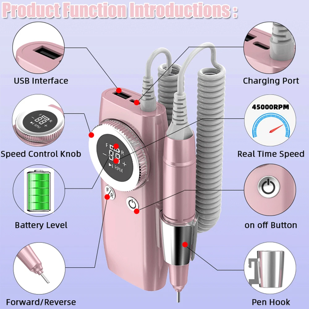 HOT SALES 45000RPM Nail Drill Machine Electric LCD Display Manicure Pedicure Kit