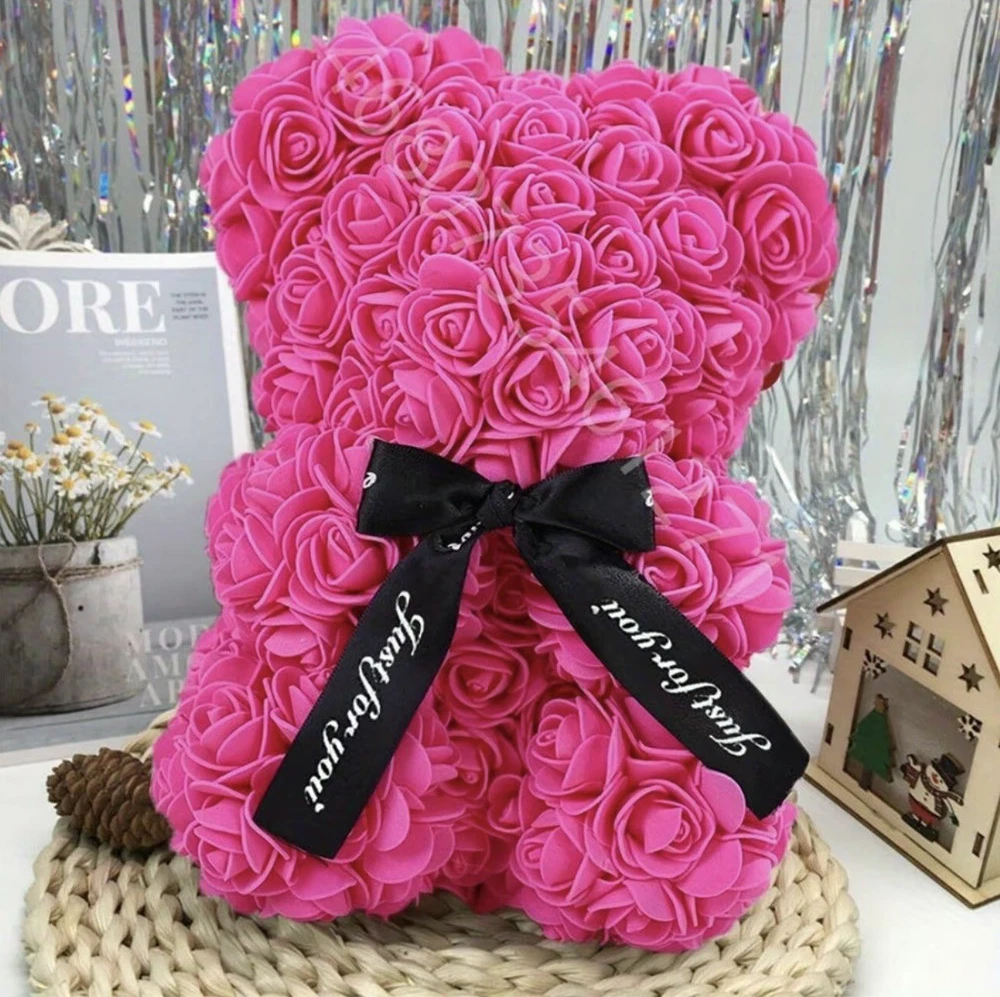 This beautiful Valentine's Day gift features a 25cm teddy bear made of soft and cuddly material, holding a pink rose flower bouquet. The flower bouquet is made of artificial, high-quality roses in a beautiful shade of pink. The assembled product weight is 2.68 oz and the dimensions are 0.82 x 0.59 x 0.59 Feet. This gift is perfect for anyone who loves unique and thoughtful presents. Use it to surprise your loved ones on special occasions like Valentine's Day, birthdays, or anniversaries. It will surely brighten up anyone's day and bring a smile to their face!