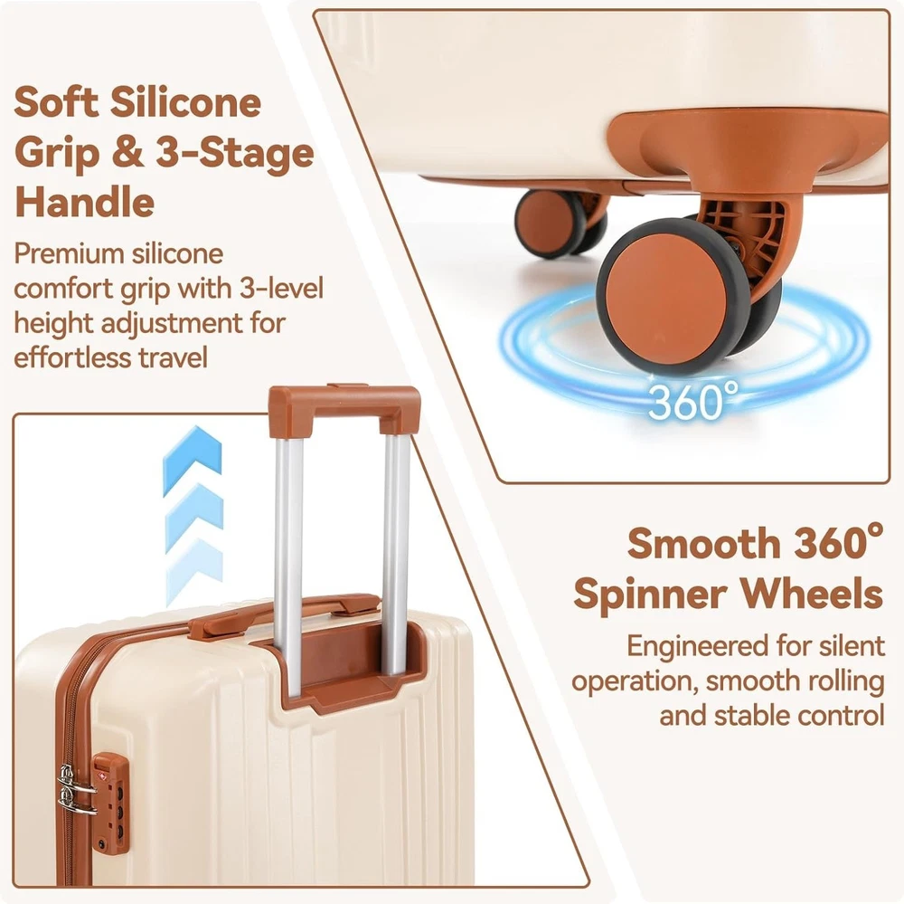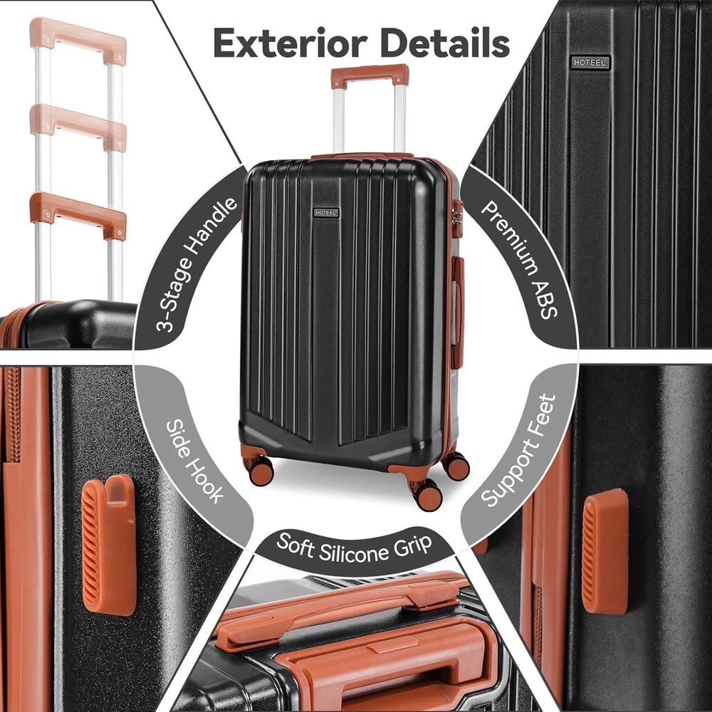 HOTEEL Luggage Sets 3 Piece Hardshell ABS+PC Travel Suitcase Dual-Spinner Wheel