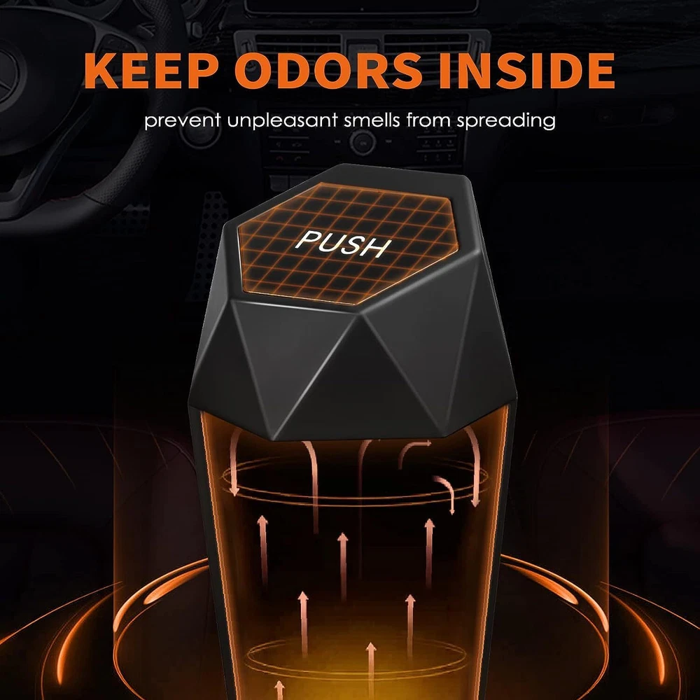 HOTOR Car Trash Can with Lid - 2 Pack, Mini Essential Car Accessories for Inter Features: WIDE APPLICATION: With a compact size of 8.1*3.6*3.6 inch, HOTOR car trash bins can be used in many areas of vehicles, such as cup holders, car door pockets, and seat back pockets. You can also set them on the desktop at home or office as a trash can or an organizer. EASY TO USE: With the flipping lids on HOTOR car storage organizers, you can easily put items or trash into them. Just push to open the lid and then it will close automatically. Moreover, the auto shut-off lid can effectively block odors, keeping the air fresh in the car. HOTOR car trash bins are one of the essential car gadgets for car owners. 30 ATTACHED TRASH BAGS: Each set of HOTOR trash cans for cars comes with 30 perfectly matching disposable trash bags. Even with a lot of waste, these durable bags are not easy to break. When the trash can is full, you can replace the used trash bag with a new bag in seconds. GREAT DECORATIONS: HOTOR car trash bins are made of premium ABS material that is durable and sturdy for long-term use. Although the HOTOR car trash can with cute in size, it can still show your exquisite taste with its unique diamond-shaped design. HOTOR car trash cans are the perfect decor for cars, homes, and offices. EASY TO CLEAN: Featuring waterproof material and a leakproof design, HOTOR car trash bins are suitable for wet waste. Besides, they are easy to clean with a smooth interior. When the trash can gets dirty, you can remove the lid, rinse the lid and body, and wipe them with dry towels. Features: WIDE APPLICATION: With a compact size of 8.1*3.6*3.6 inch, HOTOR car trash bins can be uséd in many areas of vehicles, such as cup holders, car door pockets, and seat back pockets. You can also set them on the desktop at home or office as a trash can or an organizer. EASY TO USE: With the flipping lids on HOTOR car storage organizers, you can easily put items or trash into them. Just push to open the lid and then it will close automatically. Moreover, the auto shut-off lid can effectively block odors, keeping the air fresh in the car. HOTOR car trash bins are one of the essential car gadgets for car owners. 30 ATTACHED TRASH BAGS: Each set of HOTOR trash cans for cars comes with 30 perfectly matching disposable trash bags. Even with a lot of waste, these durable bags are not easy to break. When the trash can is full, you can replace the uséd trash bag with a new bag in seconds. GREAT DECORATIONS: HOTOR car trash bins are made of premium ABS material that is durable and sturdy for long-term use. Although the HOTOR car trash can with cute in size, it can still show your exquisite taste with its unique diamond-shaped design. HOTOR car trash cans are the perfect decor for cars, homes, and offices. EASY TO CLEAN: Featuring waterproof material and a leakproof design, HOTOR car trash bins are suitable for wet waste. Besides, they are easy to clean with a smooth interior. When the trash can gets dirty, you can remove the lid, rinse the lid and body, and wipe them with dry towels. eBay integration by