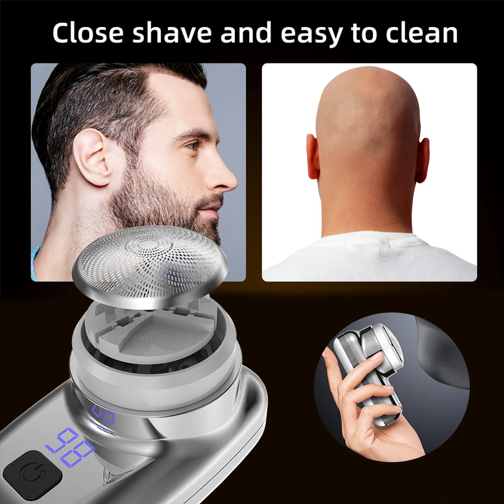 Description: 【 Portable 】 : The Electric Shaver is small in size and Suitable for air travel, business trip, office, car, on the go, camping and more. 【 Detachable Cutter Head 】 : Bald Head Shaver, detachable water wash head, cleaning is more convenient. Use wet or dry. Bass motor, fast speed, low noise. 【 Material 】 : The Electric Foil Trimmer is made of stainless steel, which is gentle on the skin and fits hair, sideburns and chest hair. 【 Easy to Use 】 : Electric Shaver, curve shaped close shaving, thin and large mesh, close to the face, captures beards, especially for hard beards. 【 LED Display 】 : Mini Shaver for Men adopts LED Display, which can clearly display battery level and motor speed. Specification: Input voltage:5V Rated power:5W Charging time:2 hours Using time:120 mins Size Chart: 5.5cmx11.5cm/2.17inchx4.53inch Package Includes: 1 Electric Shaver 1 brush 1 manual 1 USB charge Note : If you have any questions, please feel free to contact us, please do not leave any negative feedback, we will deal with it as soon as possible, thank you