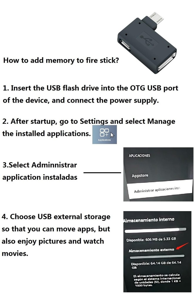 OTG Cable Adapter for fire Stick 4K, Max, Lite, Cube.Fire Stick Add Memory,External Expansion Storage Adapter.with Micro USB Powered 3-Pack The biggest advantage of the product: This adapter allows you to add extra external devices to your fire stick, increase the storage space of the host, such as flash drive/keyboard/mouse/USB card reader/USB ethernet adapter/USB hub/game controller or any other equipment etc. Compatible device: Fire TV Stick 4K,Max,Lite, Cube. Amazon Fire TV Devices PlayStation Classic Google Chromecast (micro USB port) Raspberry Pi Zero Compatible with devices that support OTG like Samsung Galaxy S II, Galaxy Note,SNES Mini/PlayStation Mini (Classic) etc. Notable things: It can NOT charge any Phone or Tablet!!!!! Buy it now, you will get 3 preferential packages, and they will be delivered to you as quickly as possible. If you encounter any problems during use, please feel free to contact us. 3 x OTG adapter Allows you to connect any USB device to the Fire TV Stick and transfer photos, videos, documents and other data between the device and external storage. Extend the Fire Stick with external USB devices to increase the host's memory space, such as flash drive/keyboard/mouse/USB card reader/USB Ethernet adapter/USB hub/game controller or any other device, etc. Plug and play, no drivers required, just connect the micro USB male port to your host device and the micro USB female port to your USB power cable, and you're ready to go. Note: It will not charge any cell phone or tablet! ! ! So if you buy it for your phone or tablet, it only supports OTG function. If you encounter any problems in use, you can contact us at any time, and you will get a reply and technical support within 24 hours.