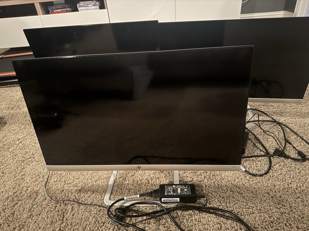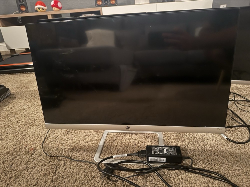 I have 3 that I used for gaming and decided to replace by 1 bigger. They are in a very good condition. The HP 25ES 25-inch Monitor is a versatile display suitable for casual computing, gaming, and graphic design. With a sleek silver design and a slim bezel, this IPS LCD monitor offers a maximum resolution of 1920 x 1080 and a contrast ratio of 10000000:1. It features a 16:9 aspect ratio and a refresh rate of 60 Hz, making it ideal for a variety of tasks. Additionally, it is Energy Star certified and offers VGA D-Sub and HDMI Standard video inputs for connectivity options. The monitor's tiltable feature and flat screen design make it a convenient and stylish addition to any workspace or gaming setup.