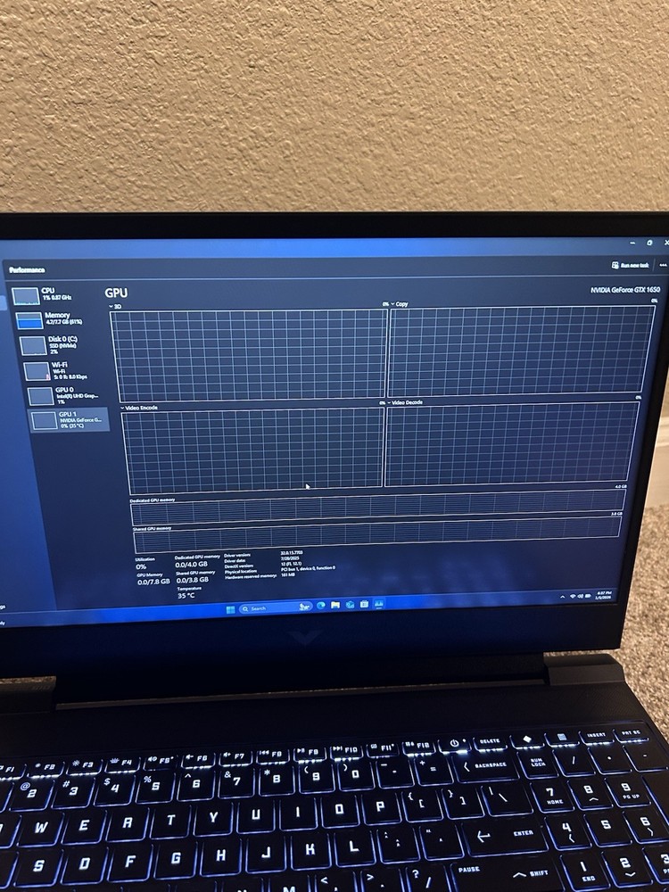 Selling my HP Victus 15.6” laptop in great used condition. Perfect for gaming, school, or work. Specs: • CPU: Intel Core i5-12450H • GPU: NVIDIA GTX 1650 • RAM: 8GB • Storage: 512GB SSD • Screen: 15.6” Full HD • Battery Health: 91% (holds charge very well)