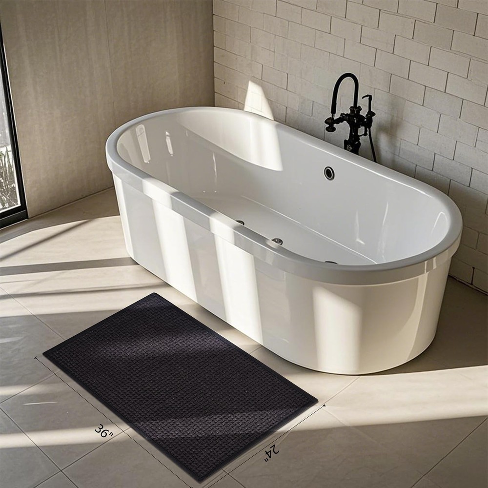 Tired from work? Sway away all your stress when you touch your feet onto our soft bathroom rugs. The rich, smooth texture gives your feet a relaxed feeling and makes you feel like you are in a spa as you step out of the bath tub or shower, wrap yourself in blissful luxury. Give your living room a contemporary look by placing our bath rugs, which gives a unique yet lush look. Keep it anywhere and it won’t disappoint. Indulge Yourself in Pure Luxury: Our bathroom rugs feature a low-pile woven design for a perfect blend of style and comfort. Step onto our soft bath rug after your shower and experience unmatched coziness. With this elegant woven bath rug, you can transform your space into a spa-like oasis Super Absorbent and Quick Dry: Our bath rug is super absorbent. When you step out of the bathtub or shower, it quickly soaks up the dripping water from your feet. And our fabric technique allows the rug to dry fast in the open air, bring you a dry and comfortable bathroom Upgraded Non-Slip Backing: Our bathroom mats feature natural rubber backing, increasing slip resistance of a floor surface. They tightly grip smooth surfaces without skidding, and hence prevent and reduce the risk of falls for kids and the elderly. Say goodbye to slippery PVC/TPR bathroom mat—step out safely with our secure, stable design Easy to Clean: Unlike high pile chenille bath mats that easily trap dirt, our bath mat design is easier to clean. Machine washable and more durable. Not easy to shed or deform, as its backing and surface come with unibody design. Please do not bleach or tumble dry Multi-Purpose Use: Available in many colors, these bath rugs can go with different kinds of decor style. Having lots of sizes to choose from, such as small bath rug, large bath rug,long bath rug and bathroom runner rug, you can easily find one to fit in front of the sinks, showers, or bathtubs. You can also use it in laundry room, bedroom, kitchen, or use as RV bath mat and more