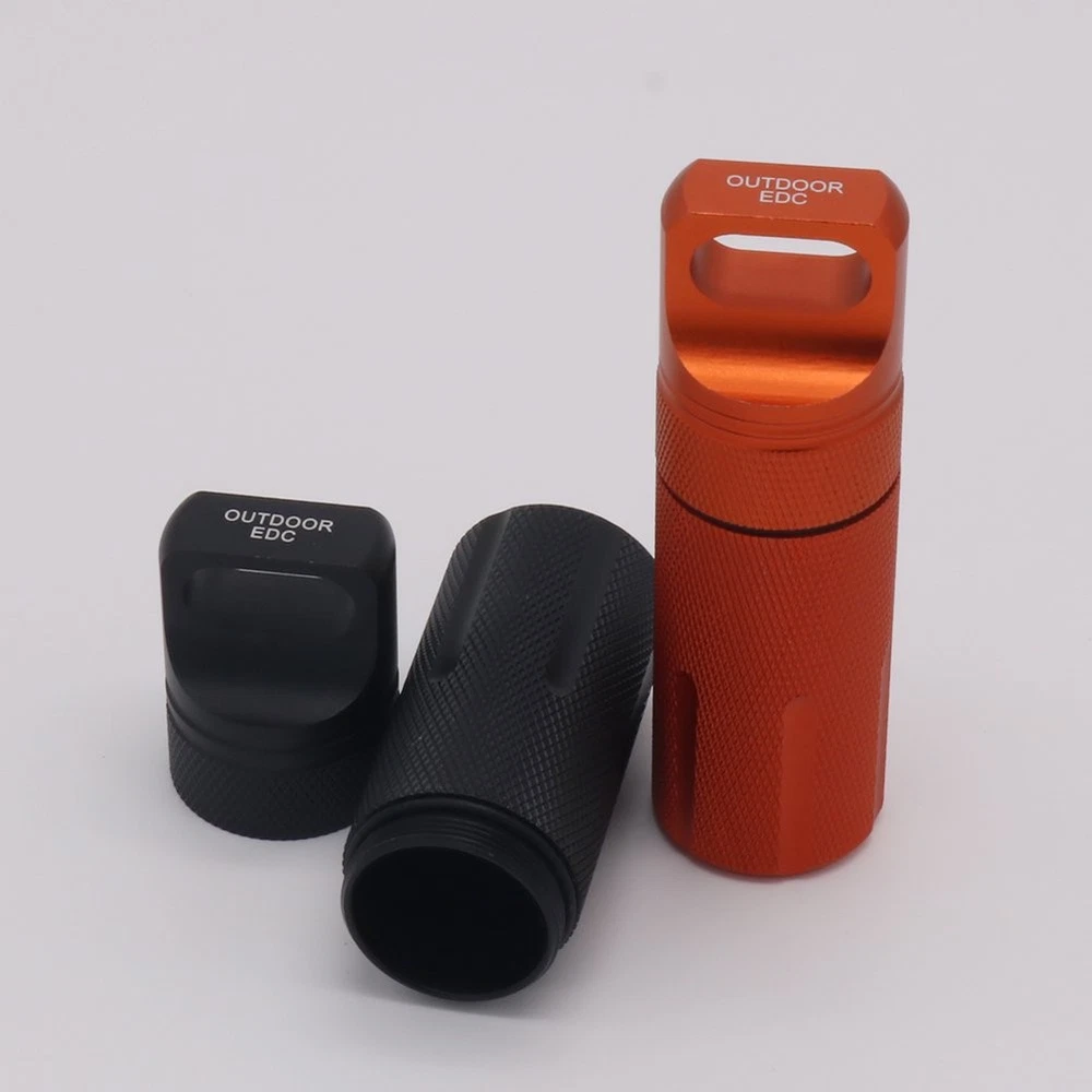 The tough Capsule can be used for so many different projects: - For containing medicine medications prescription supplements - For protection of USB drives containing vital documents - For camping, water activities, travel in general with matches, first aid items and survival supplies that you need to keep dry - For hiding a spare key ,money for emergencies or others which need a Secure Storage - For delicate mechanical items and other small valuables Small handy and portable, but also large enough to meet your imagination You can identify the contents by the different colors, Nice Black color and bright Orange color are easy to find Specifications: * Material: Strength cast metal materials - aluminum alloy * Shape: column/cylinder * Color: Black and Orange * Size : 3.9”/ 100mm (High), 1.18”/ 30mm(Outer Diameter) * Package includes: 1pcs Black outdoor EDC and 1pcs Orange outdoor EDC There may be little error of measuring due to manual measurement. Tips: Please make sure you clean it a little before first using it TIPS: For any questions or concerns, please don't hesitate to reach out to us. We're here to make things right for you. The Tough Metal Pill Fob / Container is made of Military Grade Aluminum Alloy, solid, well built, indestructible; and it’s good craftsmanship, the nice threads are extremely smooth, feels very good in the hand The small high capacity time capsule/cylinder is screwed with rubber O-ring seal which make it 100% waterproof, it screw on and off very well and won't open accidentally The handy EDC survival kit is small and portable but the capacity is large enough to meet your daily need and some outdoor activities, like camping, hiking, boating, fishing Perfect to store vitamins, capsules, even a small nitroglycerin pill bottle, coin, quarters, money, U-disk,easily-lost Bluetooth earpieces, floss stick, toothpicks, earbuds, batteries, matches, flintstones, outdoor seasoning, delicate mechanical items and other small valuables The Little Emergency First Aid Kit is lightweight, easy to carry in purse or pocket, lunch pack and hiking/snowboarding pack, and can be clipped easily to D-ring locking carabiner keychain