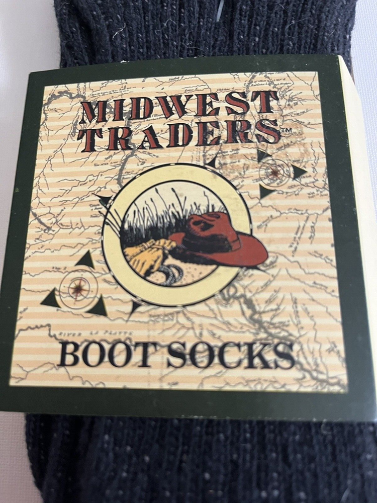 HTF NWT Midwest Trader Men's Boot Sock 10-13 Black Cotton Blend-shoe Size 6-12.5 Step up your sock game with these black cotton blend boot socks from Midwest Traders. Designed for men's shoe sizes 6-12.5, these mid-calf socks are perfect for casual or workwear occasions during the fall and winter seasons. With a full toe style, they provide ultimate comfort and support. These socks have a classic and timeless style that will complement any outfit, especially boots. They come in a single pack and are not personalized or handmade. Midwest Traders is a trusted brand in the United States, and these socks are sure to become a go-to favorite. Add them to your sock collection today.