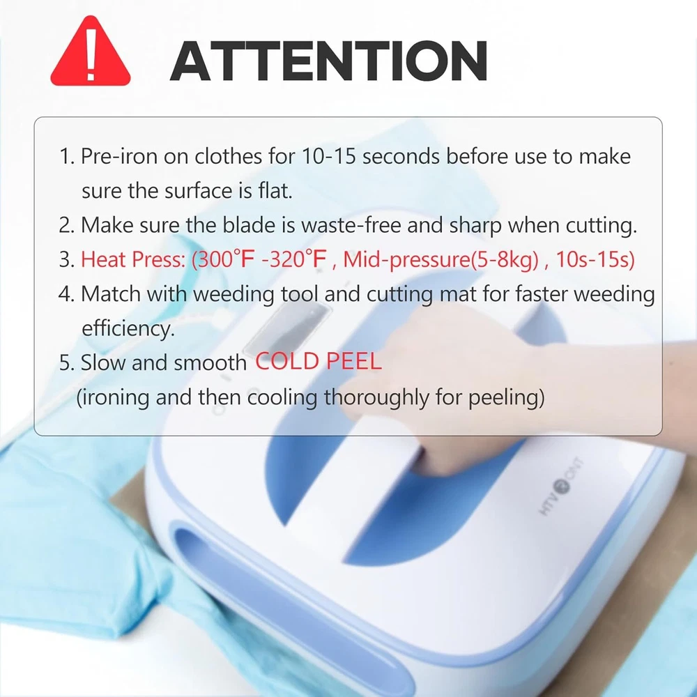 Fabric 【EASY TO CUT WEED TRANSFER】Our premium quality heat transfer vinyl will save time which you may waste on each image or letter, because you can cut and weed easily through the designs just right. The iron on vinyl is sensitive to temperature and pressure, which can be heat transferred to any t-shirt easily. Before cutting, make sure the blade is clean and sharp, so that your design can be cut well and weeding can be done better 【GREAT STICKINESS】Our htv vinyl rolls is pretty sticky, they adhere to the fabric seamlessly and has held up well in the wash without fading, peeling and crack. When ironing, please pay attention to the various parameters of ironing so that the ironing effect will be better. <300℉ -320℉, Mid-pressure 5-8 kg, 10s-15s> After cooling for 1-2 minutes Peel off afterwards Your designs of our white heat transfer vinyl will keep the same color and can't come off even after repeated washing cycles 【USE WIDELY & SAVE TO WEAR】Your shirt, tote bags, sportswear, aprons, hat and pillow, which use our white htv, make you stand out from the crowd. Heat transfer vinyl is suitable for athletic mesh fabrics, Cotton, polyester and cotton blend, lycra/spandex, textiles etc. Our htv vinyl materials are SGS certified and are safe to wear 【12 INCH x 8 FEET】HTVRONT htv vinyl rolls are easy and convenient to cut into different sizes of art designs or logos or letters and perfect for 12''x12" and 12''x24" cutting mats. Our iron on vinyl are compatible for all cutter machines 【PERSONALIZE GIFT & CUSTOM MADE】Perfect choice for Christmas, Halloween and anniversaries gift to your family or lover. I mean, who doesn’t love a fun new t-shirt? And with our heat transfer vinyl, you can easily customize it to be something personal that they will love. If you are not satisfied with our htv vinyl, please feel free to contact us Product Description Our iron on vinyl is pretty easy to cut and weed, allowing you to create projects of all sizes. Our htv is sensitive to pressure and temperature, which can be transferred on any Fabric easily. Our vinyl is made of PU material, it is not only thin but also more flexible and stretchable. 1 EASY TO CUT & WEED 2 EASY TO TRANSFER 3 STRETCHABLE Not Just a HTV Roll Our htv has a great applications on daily necessities, like T-shirt, hats, pillows, bags, wallet etc. HTVRONT Comparison Add to Cart Add to Cart Add to Cart Add to Cart Add to Cart Add to Cart Customer Reviews 4.6 out of 5 stars 3,632 4.6 out of 5 stars 1,187 — 4.7 out of 5 stars 1,305 3.8 out of 5 stars 65 — 4.5 out of 5 stars 38 Price $25.99 $ 25 . 99 $49.99 $ 49 . 99 — $19.99 $ 19 . 99 $129.99 $ 129 . 99 $79.99 $ 79 . 99 $45.99 $ 45 . 99 SIZE 12'' x 3FT 12'' x 3FT 15 X 15" 15"x15" 19.68"L x 15.74"W x 11.8"H Multi-size 4.3"L x 4.8"W x 6.1"H COLOR 12 Boho Colors 20 Vibrant Colors Bubble Blue Grey White Multicolor Misty Blue USAGE Used in shirt,hat & pillow,etc Used in shirt,hat & pillow,etc DTF,Heat Transfer, Sublimation Used in Heat Press Machines Heat Transfer, Sublimation Used in shirt,hat & pillow,etc Shirt Cup Shoes Doll Hat CLASSIC HTV ✔ ✔ ✔ ✘ ✔ ✘ ✔ PUFF HTV ✘ ✘ ✔ ✘ ✔ ✘ ✘ HTV BUNDLE ✔ ✔ ✔ ✘ ✔ ✘ ✘