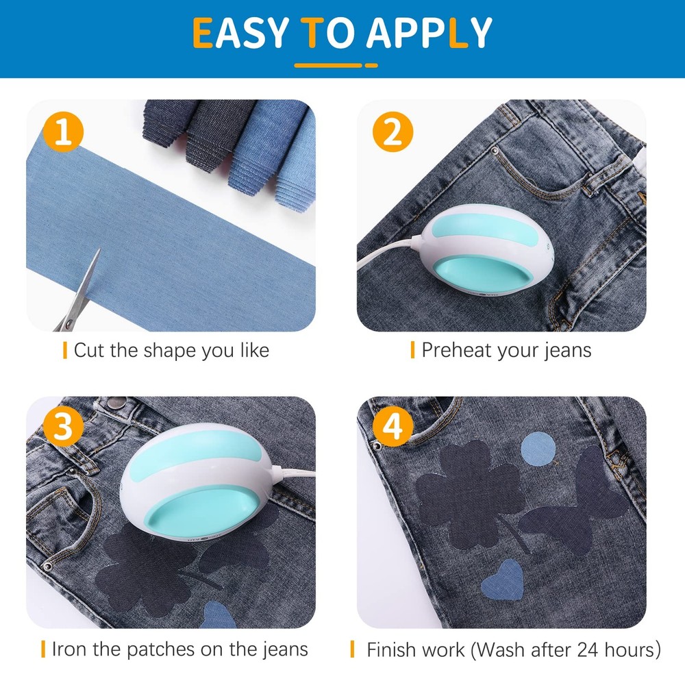 4 Rolls Iron-On Denim Repair Patches 4x20 Inch for Jeans Pants Clothing