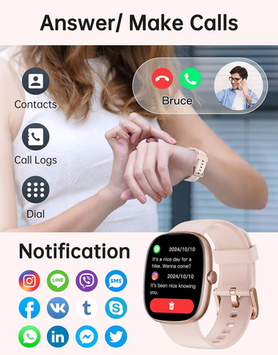 HUAKUA Smart Watches for Women Men (Answer/Make Calls), 1,85" HD Smart Watch for iPhone/Android Phones, Fitness Tracker with 100+ Sport Heart Rate/Sleep Monitor Pedometer IP68 Waterproof (Pink) LuxeFusion Product Description Features Stylish Smart Watches for Women Men: HUAKUA D3 smart watch adopts a 1.85-inch HD full-touch curved screen, which delivers an exceptional image quality and touch sensitivity. You can easily set the watch face by choosing from the app with over 200 personalized dials or from your favorite photos to match your style. Make/Answer Calls Smart Watch: By connecting the watch to your smartphones (compatible with iOS 9.0/Android 5.0 or above smartphones) via Bluetooth and the app, you are able to answer or make calls just on this smart watch, allowing you to stay connected with family and friends anytime. Message Notifications: You can receive real-time notifications directly on D3 smartwatch, such as incoming text or social media messages. It keeps you informed and never miss anything important. (Note: You can read but can’t reply messages with the watch) Fitness Tracker Watch: With 100+ sports modes, this watch can meet a variety of exercise needs. It automatically tracks your steps, calories burned, distance covered, and provides accurate real-time exercise data, helping you better understand your fitness progress. Heart Rate Monitor & Sleep Tracker: Equipped with advanced sensors, this smart watch monitors your heart rate, blood oxygen levels and sleep quality, providing valuable insights into your health. By continuously recording and analyzing data, empowering you to make lifestyle adjustments for a healthier life. Long-Battery Life & IP68 Waterproof: With 2 hours of charging time, this fitness watch can last 5 days with frequent use or 30 days when standby. Its IP68 waterproof design allows you to wear it with no worries while doing activities or washing your hands. More Practical Features: This smartwatch offers a variety of practical tools, including music control, alarm clock, stopwatch, calculator, find phone, weather forecast, female cycle tracking and so on. Product Details Product Dimensions: 9.65 x 1.38 x 0.43 inches Item Weight: 3.2 ounces Item model number: D3 Batteries: 1 A batteries required. (included) Manufacturer: HUAKUA Language: Spanish Country of Origin: China Standing screen display size: 1.85 Inches Memory Storage Capacity: 128 MB Operating System: compatible with iPhone and android phones Special Feature: Heart Rate Monitor, Sleep Monitor, Blood Oxygen Monitor, Bluetooth Phone Call, Message Notification, Customizable Watch Faces, Alarm Clock, Time Display, Touchscreen, Weather Forecast, Steps Tracker, Calorie Tracker, Distance Tracker, Pedometer, Activity Tracker, Multisport Tracker Heart Rate Monitor, Sleep Monitor, Blood Oxygen Monitor, Bluetooth Phone Call, Message Notification, Customizable Watch Faces, Alarm Clock, Time Display, Touchscreen, Weather Forecast, Steps Tracker, Calorie Tracker, Distance Tracker, Pedometer, Activity Tracker, Multisport TrackerHeart Rate Monitor, Sleep Monitor, Blood Oxygen Monitor, Bluetooth Phone Call, Message Notification, Customizable Watch Faces, Alarm Clock, Time Display, Touchscreen, Weather Forecast, Steps Tracker, Calorie Tracker, Distance Tracker, Pedometer, Activity Tracker, Multisport Tracker See more Connectivity Technology: Bluetooth Wireless Communication Standard: Bluetooth Battery Cell Composition: Lithium Polymer GPS: No GPS Shape: Square Screen Size: 1.85 Inches Brand: HUAKUA 🚚 Free Shipping All orders ship free and fast to your doorstep. 🔁 Easy Returns Satisfaction guaranteed. 30-day returns, no questions asked. 💬 24/7 Support Contact us anytime; we’re here to help, day or night. Brought to you by LuxeFusion – Quality you can trust.