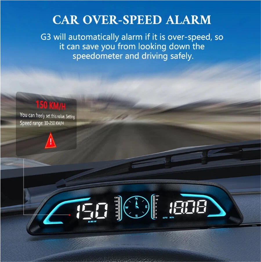 Product Description GPS Car HUD Speedometer Head Up Display Smart Digital Alarm Reminder Meter Car Accessories For All Cars Add our listing to Watchlist Or Add to Cart , you will get more discount HUD Drive: The best head-up display for any car 1:Head-up display (HUD) for everyday commute to stay focused and connected while driving 2:Installed on the dashboard at one time, the cables are concealed, and the appearance is the same as the original car, The machine does not damage the car, and use safe. (For all models, the connection is a USB interface.) The original car is not damaged, the smart is started to stop with the car; HUD works: Receive the data from the car and display it on the machine. Alarm functions Improve driving safety Overspeed alarm:Alarm when the vehicle speed reaches the set default value of 150KM/H (30-250 setting) Fatigue driving: Reminder after continuous driving exceeds the default value of 4.0 hours (1-8h setting) Machine can be placed anywhere Can be placed in a position you find comfortable while driving. Display of different functional interfaces 1. Speed+Time+Compass+ Number of GPS satellites+ Decorative atmosp 2. Speed+Driving time+ Decorative atmosphere lights 3. Driving direction angle speed+ Compass+Altitude 4. Speed+Driving distance 5. Speed+Compass+ Acceleration time per 100 kilometers+ Decorative 6. Speed+Decorative atmosphere lights 7. Speed+Compass+Number of GPS satellites 8. Simple speed Multiple function display screen It can only display the speed alone without decorative lights, or with decorative lights and a driving compass, etc. Automatically turn on and off as the car starts and stops. Automatic turn on/off Automatically turn on and off as the car starts and stops. GPS Version (It is compatible with all cars! It supports over-speed alarm!) Decorative mood lighting Multi-function display area: display the speed and driving direction angle, the dial can be switched left by dialing DIR: Direction of travel, angular speed unit: MPE-mile, KW/km Speed icon Compass: stop flashing after the satellite is found, then you can use N North B East West S South normally Satellite number icon The number of GPs satellites MTN driving time TRIP driving distance ASL altitude 8+100 km acceleration time Multi-function display area, the number of time satellites, the driving distance, the driving time, and the acceleration time for 100 kilometers Decorative mood lighting Vehicle Satellite Altimeter The altitude is collected by satellite and is not affected by naturul factors such as weather.Very high positioning accuracy. GPS Compass Display the forward direction while driving,so that your journey is not yaw. N-North, S-South, W-West, E-East Travel time calculation Keep track of how much time you drive from the start to the end. Any car can be used Can be used with USB (5v).One USB cable, plug and play. Perfectly compatible with vans trucks,buses carsoff-road vehicles suvsand other vehicles Car Performance Test The time required to accelerate from 100 kilometers is an important reference data for vehide dynamic performance and testing.The time and distance used by the car are from KM/h--100KMh Non-destructive installation,Plug and play 1:Plug the USB cable into the cigarette lighter interface 2:The wire is inserted into the A-pillar seal 3:Connect the USB side to the UHD put in the right place Product accessories: 1*G3-Head-up display 1*1.8 m Micro USB 1*Non-slip mat 1*English manual GPS Display FAQ 1. There is no display on the screen, no power Check whether the USB cable is damaged, replace the USB cable for testing, and prohibit using a voltage higher than 5V for power supply. 2. No speed The power-on satellite icon flashes to indicate the satellite search state. Move the car to an open road, and when the satellite icon stops flashing, it can be used normally. 3. Time calibration After the satellite icon is flashing and the satellite is found, enter the sixth item of the setting item to adjust the calibration local time. 4. The speed is not allowed Check whether the unit is correct, km KM/mile MPH, (speed unit switching reference setting item) When the car leaves the factory, the manufacturer increases the speed displayed on the dashboard by 5-7%, and the international calibration is based on satellite data. Fine-tune the vehicle speed, such as the meter displays 100km/h, the machine displays 105Km/h, and adjust the parameter value to 102. 5. The driving direction is displayed incorrectly When there is no vehicle speed, the satellite cannot identify your driving direction, and it can be displayed normally only after the vehicle speed exceeds 5Km/h. 6. Turn off the buzzer Turn the scroll wheel to the left for 2 seconds to turn off the buzzer, and turn the wheel left again for 2 seconds to turn on the buzzer. Payment Returns Contact Us Shipping We accept payment by PayPal only ! Payment should be completed within 5 days after buyer places the order,or else an unpaid case will be opened in order to cancel the transaction. If you can not pay in time, please contact us. e-check from PayPal will only be processed once the payment clears. All of the items will be shipped to buyer's EBAY address,please confirm your address on Ebay before you buy.Your order will be usually shipped out the same or next business days once the payment is made and cleared. 30-day Warranty with Exchange for defective, malfunctioned, incorrect or parts-missing items. Please notify us and return the item with all parts and accessories packed and marked "FOR EXCHANGE" within 14 days of receipt. If defective, malfunctioned or parts-missing items are no longer available, a refund may be issued. All returning postage costs will be the responsibility of the buyers under all circumstances. If you encounter any problems about anything, please feel free to contact us and we will do our best to assist you solve the issue. If you are not satisfied in anyway, please feel free to let us know and give us a