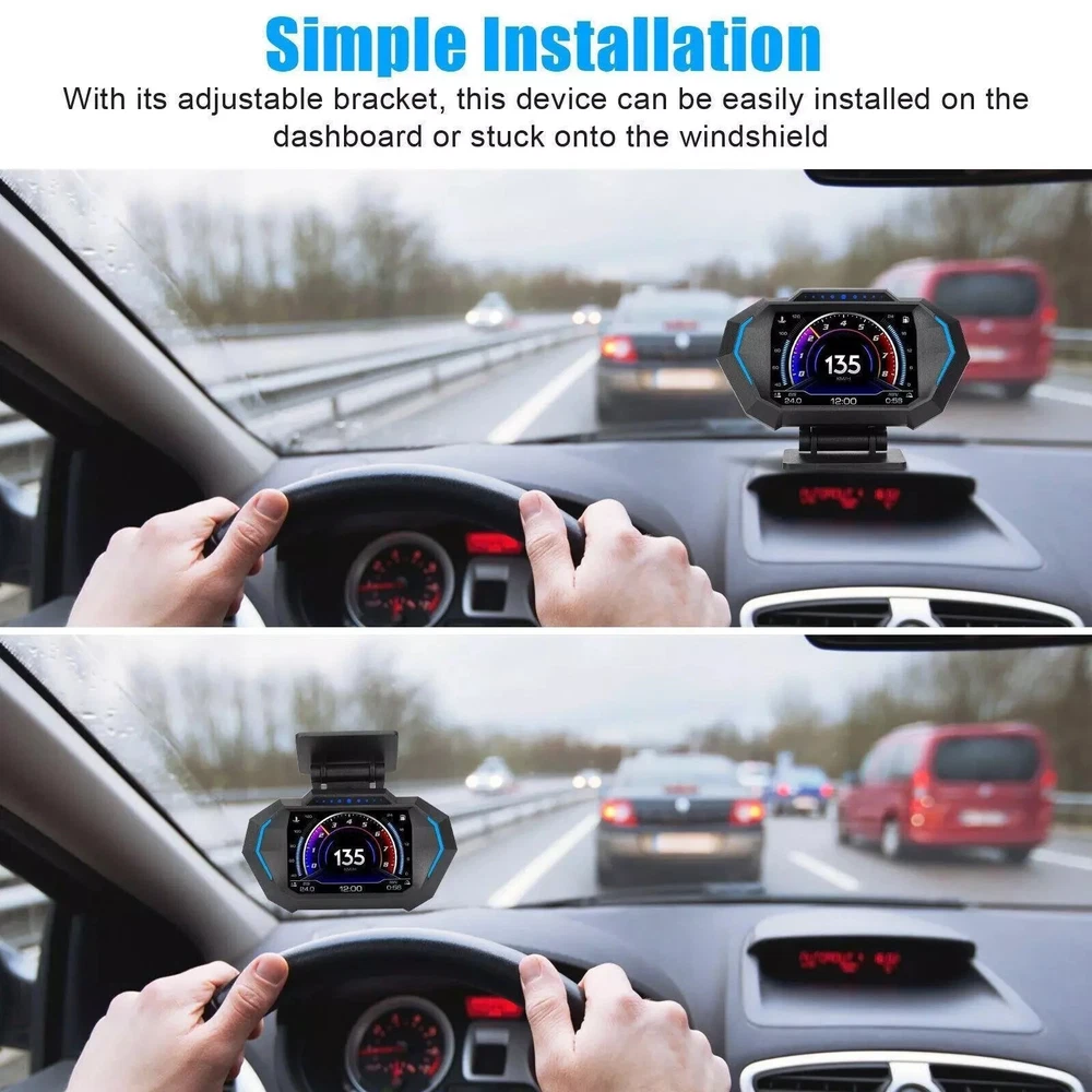 Product Feature ✨Enhanced OBD2 Gauge Display+GPS Speedometer: Featuring a high-definition color LCD gauge, this device offers dual working mode with OBD2+GPS capabilities, allowing you to access a wider range of data. With six adjustable color atmosphere lights and twelve unique UI display interfaces, you can effortlessly switch between them to enjoy a rejuvenating driving experience. ✨29 Display Functions: This HD heads-up display for cars offers a wide array of real-time information, including speed in KM/H and MPH, RPM, Speed MPH, Compass Direction, Driving Distance, Altitude, oil temperature, turbo pressure, engine load, and more. Stay informed about your vehicle's condition at all times. ✨Multiple Alarm Functions: Stay safe and informed with the multiple alarm functions of our OBD2 speedometer. It provides alerts for RPM, overspeed, water temperature, oil temperature, oil pressure, low voltage, turbo pressure, fatigue driving, and more, ensuring you are aware of any potential issues. ✨Simple Installation: With its adjustable bracket, this device can be easily installed on the dashboard or stuck onto the windshield. Enjoy a hassle-free installation process without causing any damage to your vehicle. ✨Wide Vehicle Compatibility: Our OBD2 gauge display comes with default OBD2+GPS functionality. If your vehicle doesn't support the OBD2 protocol, the GPS function automatically takes over, ensuring compatibility with a wider range of vehicles. Product Specification Type: Speedometer Material: ABS+PC Color: Black DisplayType: 5inch LCD Screen Applicable Models: Universal Dual System: OBD2 + GPS Package Included 🎁 1 x OBD+GPS Speedometer 🎁 1 x OBD Cable 🎁 1 x Holder 🎁 1 x Anti-slip Mat 🎁 1 x English Manual