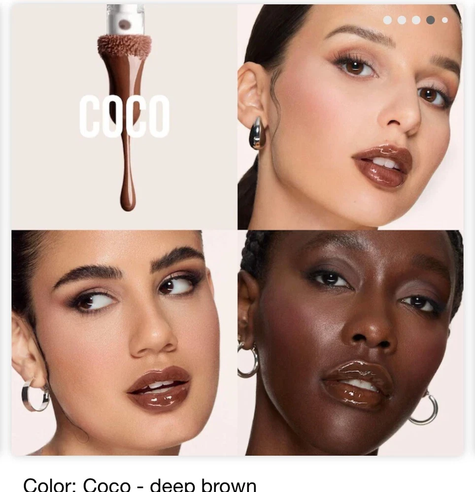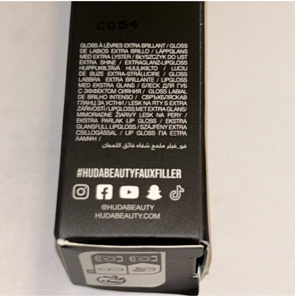 Brand in the box! You will receive HUDA BEAUTY Faux Filler Shiny Non-Sticky Lip Gloss Color: Coco - deep brown. It does have marks on the box!