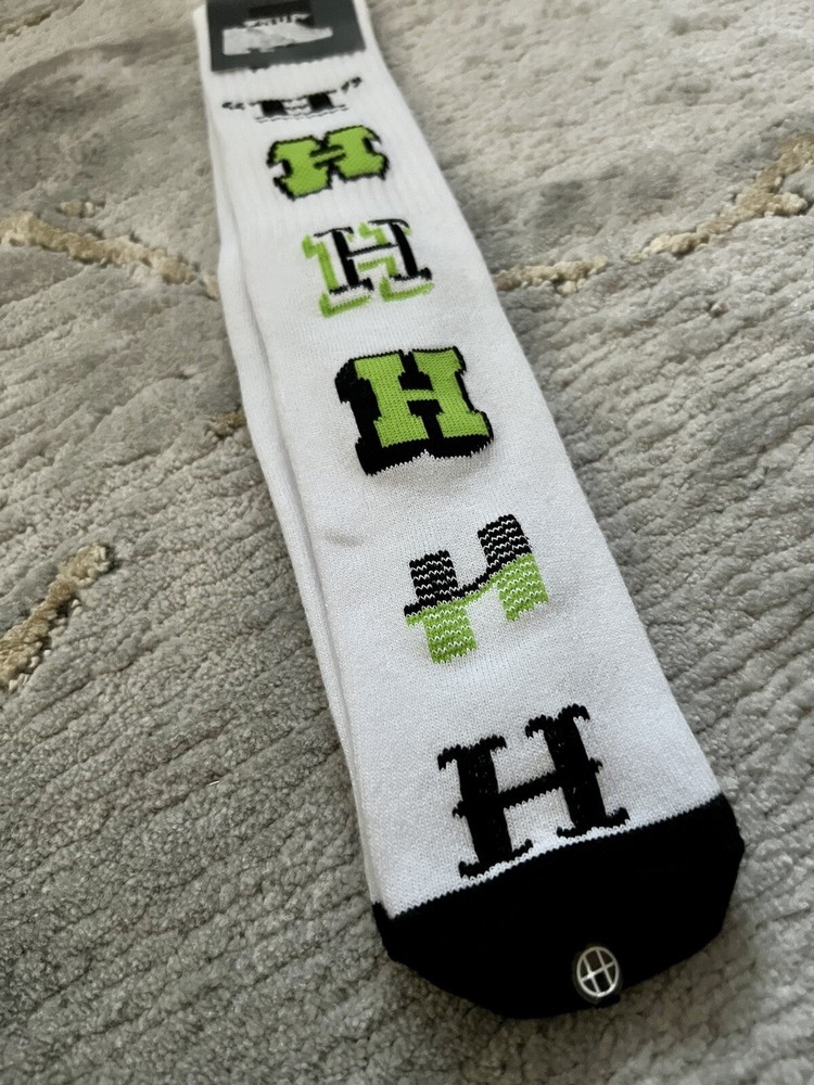 The 20th Anniversary crew socks from HUF are the perfect celebratory accessory with a sleek white colorway, adorned with various H logos in green and black. These comfy socks have athletic ribbed uppers as well as a cushioned footbed and reinforced heel and toe. -20th Anniversary White Crew Socks from HUF. -Sublimated graphics throughout. -Athletic ribbed upper. -Cushioned footbed. -Reinforced heels and toes. -Machine wash cold, air dry. -One size fits most. -55% cotton, 43% polyester, 2% spandex.