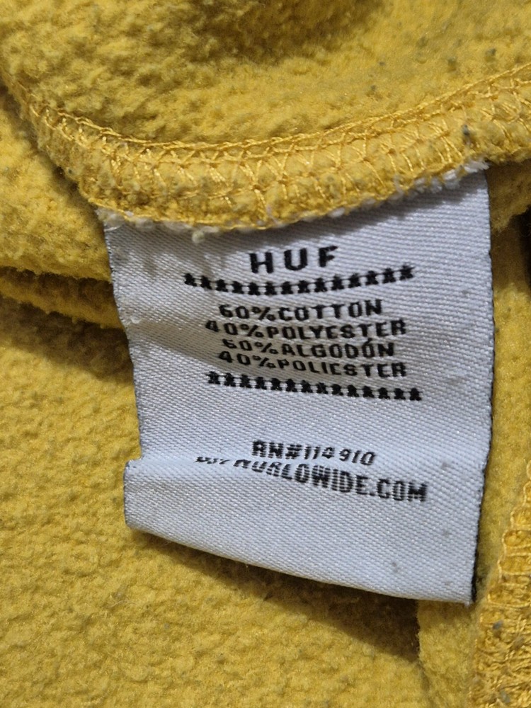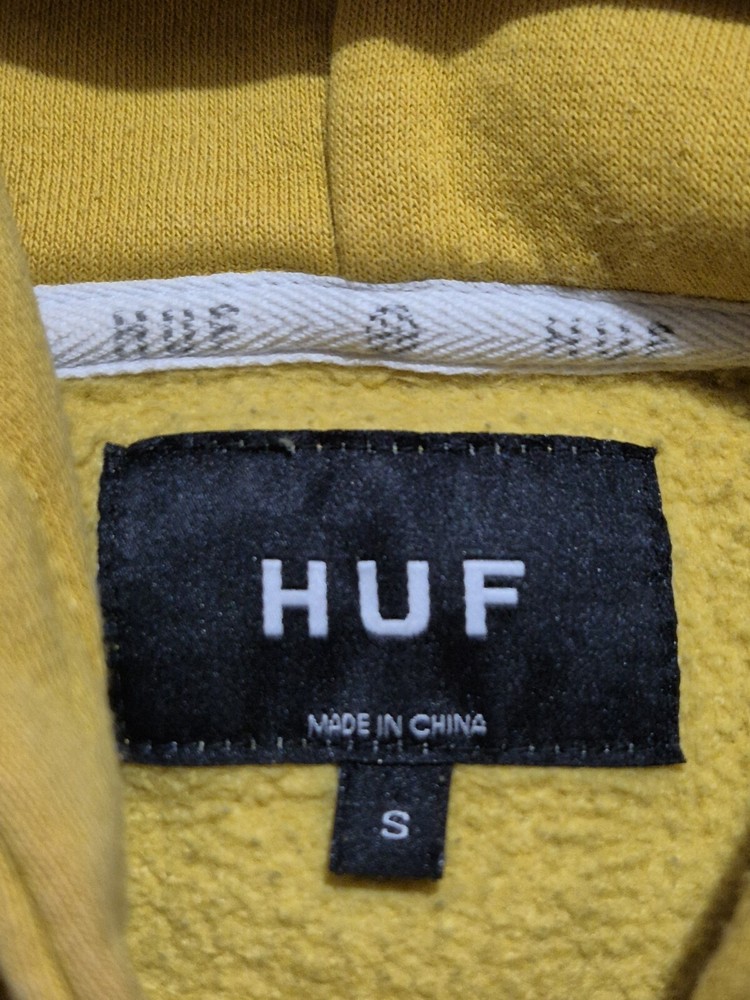 HUF Yellow/Mustard Hoodie Size S Tiny faded mark on front of hoodie otherwise great condition Please refer to pics for approx measurements if required before purchasing