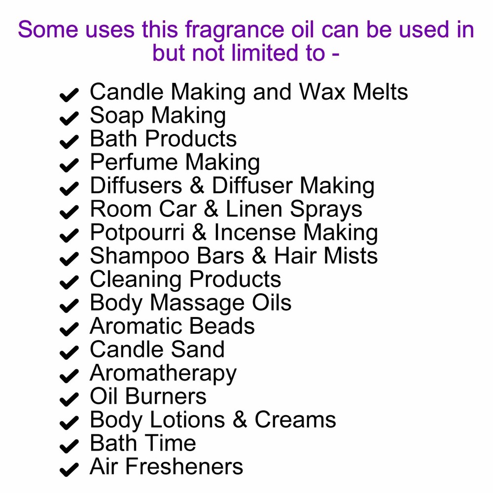 💧 Premium Fragrance Oils – High-Quality & Versatile for Candle & Soap Making 💧 Craft with confidence using my strong, long-lasting and high-quality fragrance oils , perfect for elevating all your handmade creations. These uncut, raw fragrance oils are free from alcohol, ammonia, and colorants - making them a vegan & cruelty-free choice for your scented products. With a shelf life of 12+ months, they deliver long-lasting aroma in every craft. Endless Crafting Possibilities ✔ Candle Making – Strong hot & cold throw for beautifully scented candles. ✔ Soap Making – Adds luxury and lasting fragrance to handmade soaps. ✔ Bath & Body Products – Perfect for bath bombs, lotions, body butters, & shower gels. ✔ Perfume Making – Blend to create your own signature scents. ✔ Diffusers & Oil Burners – Fill your space with calming aromas. ✔ Room & Linen Sprays – Refresh fabrics, rooms, and cars with ease. ✔ Potpourri & Incense – Enhance decorative scents with a rich aroma. ✔ Shampoo Bars & Hair Mists – Lightly fragrance hair care products. ✔ Cleaning Products – Add a touch of luxury to homemade cleaners. ✨ Usage Guidelines (Testing Recommended): 🪄Soap Making: Up to 3% per base. 🪄Candles: Up to 8% per wax volume. 🪄Wax Melts: Up to 10% per wax volume. 🪄Room/Linen Sprays: 20–30% in a carrier base. 🪄Diffusers: 20–35% per diffuser base. 🪄Oil Burners: Add a few drops as desired. 🪄Potpourri/Incense: Adjust to preference. 🪄Bath Water: 1–2 drops under running water. 🪄Body Products: Up to 3% per base. ⚠Important Safety Information: External use only – not suitable for ingestion or lip balms. Must be diluted before use – do not apply directly to skin. Fragrance shades may vary naturally. Store in a cool, dry place, tightly sealed. Avoid eyes, keep away from children & pets. If pregnant/nursing, consult a doctor before use. Freshly Made – Just For You! 💡 No mass production, no stale stock – every order is freshly handcrafted for the best quality and richest fragrance— guaranteed . Luxury Fragrance - Eco-Friendly Living