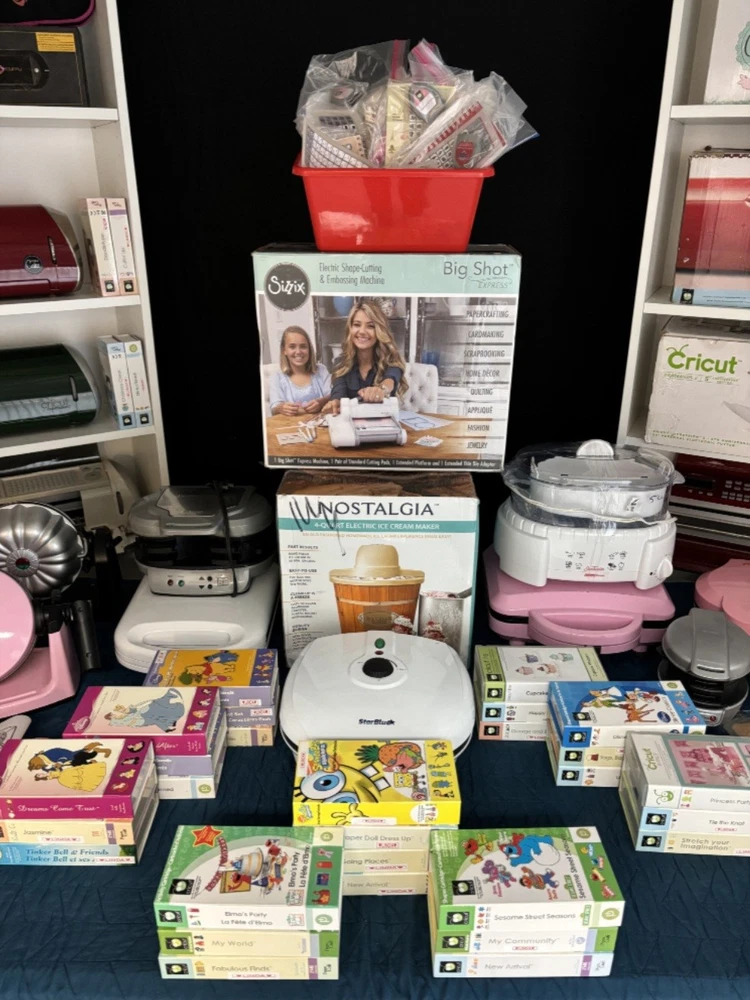 This is a significant collection of Cricut cake-related items, including cartridges and accessories. The items are of multicolor plastic material. The collection is ideal for baking enthusiasts looking to enhance their cake decorating skills and create unique designs using a Cricut machine. HUGE CRICUT CAKE/ BAKER COLLECTION FOR SALE Includes: (1) brand new Sizzix Embossing Machine (1) brand new Cricut CAKE (2) used Cricut CAKE (1) used Cricut Expressions 2 (2) used Cricut Expressions (2) used gypsy Provo design studio (50-100) cartridges with keyboard layovers (1) used BabyCakes Dozen Cupcake Maker (1) used BabyCakes CakePop Maker (1) Sunbeam Instant Steamer (1) Sunbeam CAKE maker (1) Nostalgia Ice Cream Maker & much more If shipping, will ship in a total of 3-5 boxes to ensure all items reach safely and in working condition as being sent out. Will provide tracking information once the items have shipped. Thank you for your purchase !