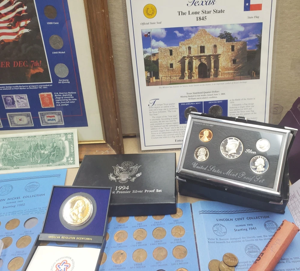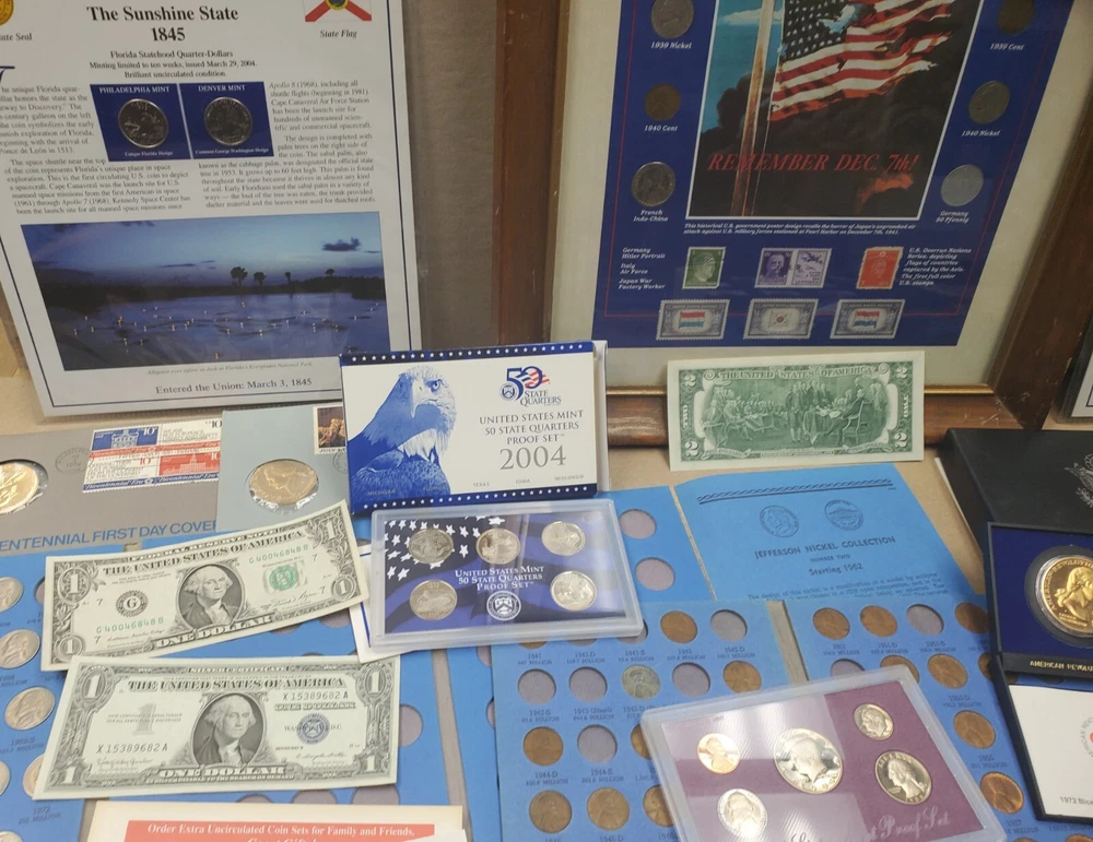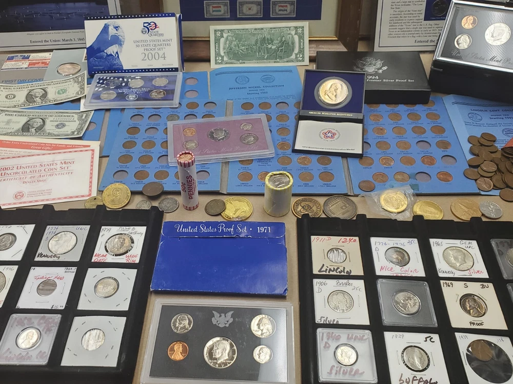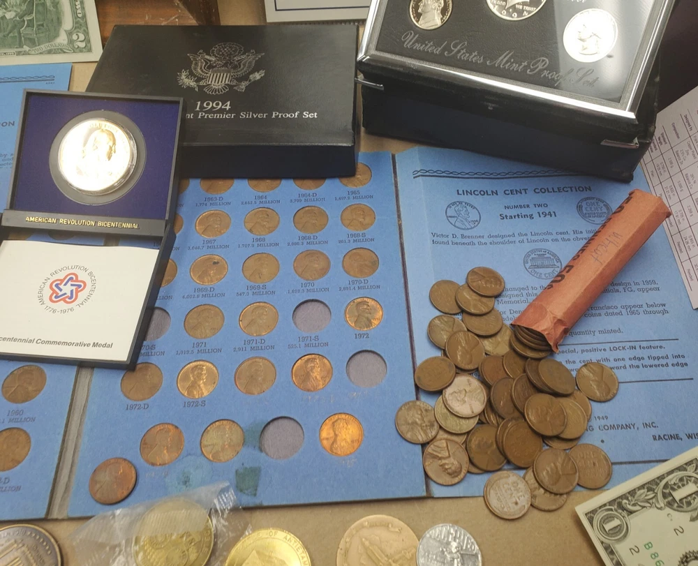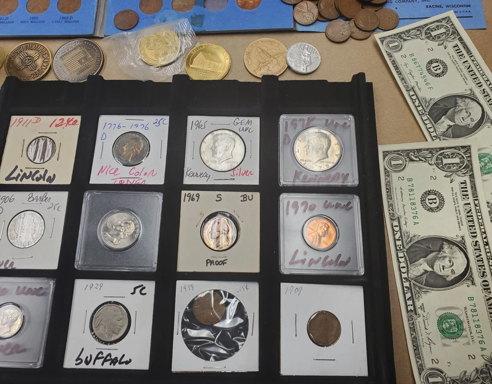 HUGE Estate Sale Coin Lot Collection - Great way to add and Nice Variety of USA, Old Rare Coins, Old Paper Money, 1957-B $1 Silver Certificate Bank Note, Lot's f Silver Coins, Terror of The Axis Coin Collection in Picture Frame, US. Mint Proof Sets, Commemorative, Medals, Lincoln BU Cents Roll, Lincoln Wheat Cent Roll, Kennedy Half Dollar Roll, Buffalo Nickel, Indian Head Cents, Silver Barber Quarters, Partial Lincoln Cent Collection in Album, Kennedy Silver Half Dollar Coins, 1994 Kennedy Silver Premier Half Dollar Set, Susan B. Anthony Dollar, & Much More to any Collection. Please Note: The Two Black 12-Coin Flip Tray's Are Not Included, it's to display the coins in the lot only. Very Clean Lot from a Smoke Free Environment. !! HAPPY BIDDING !! (SKU # 70 2-B) *** INTERNATIONAL SHIPPING QUOTED*** Thank you for viewing... Please email any questions you may have.... Take a moment and check out our other unique auctions !!! ***** Email us about signing up for our mailing list******* Exciting new items every day Philately - The Quiet Excitement Shipping We try to Ship Within 5 Business Days of Cleared Payment Will calculate international shipping PLEASE READ International Buyer's Shipping Instructions International shipping "" First Class Registered ENVELOPE " NO EXCEPTIONS ! ** Insurance, Registered mail or Confirmation/Signature Guarantee is included in the price of shipping for the USA only ** Our goal is to please our customers, provide quality and unique items, have successful transactions and earn positive feedback with a 5 star rating. We strive for accurate descriptions, quick turnaround, detailed communication, and reasonable shipping charges on every lot. Your feedback is important to us. If you feel anything about the transaction was less than 5 star, please give us the opportunity to rectify the situation Thank you The Staff at Henry Gitner Philatelists, Inc.