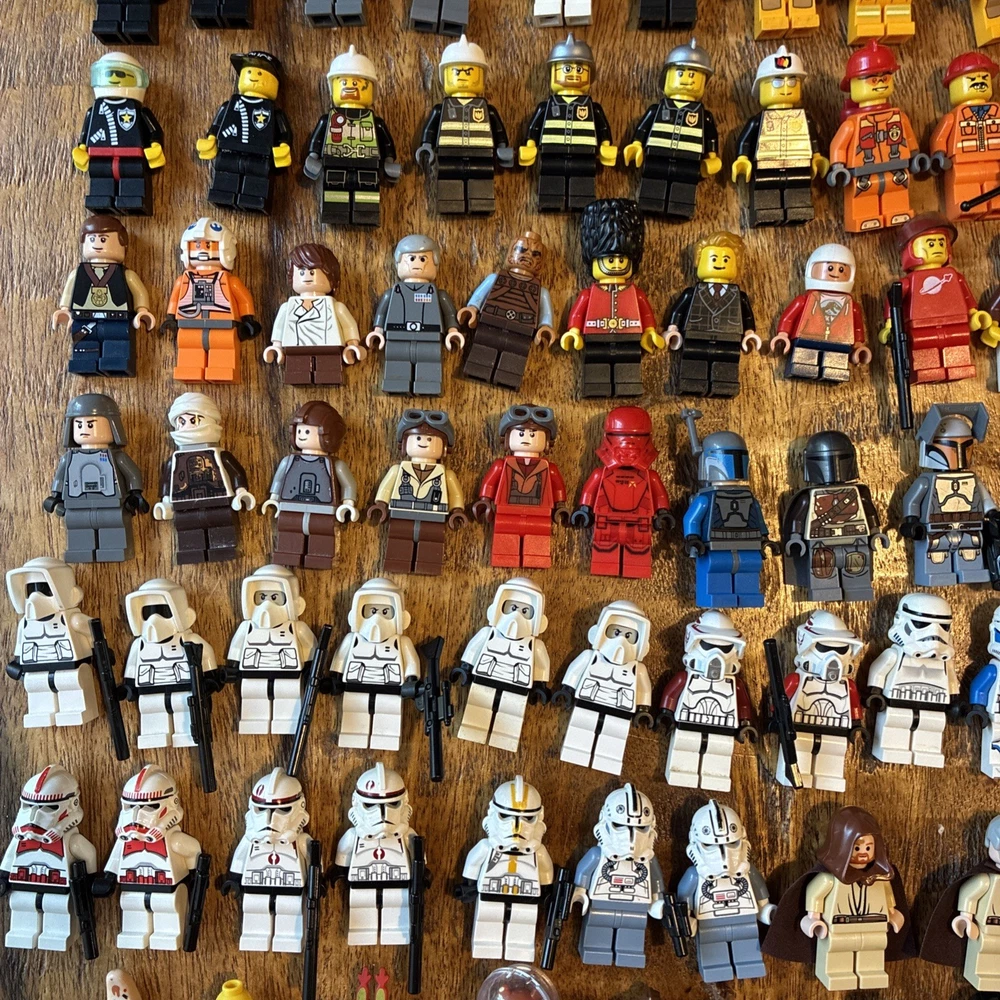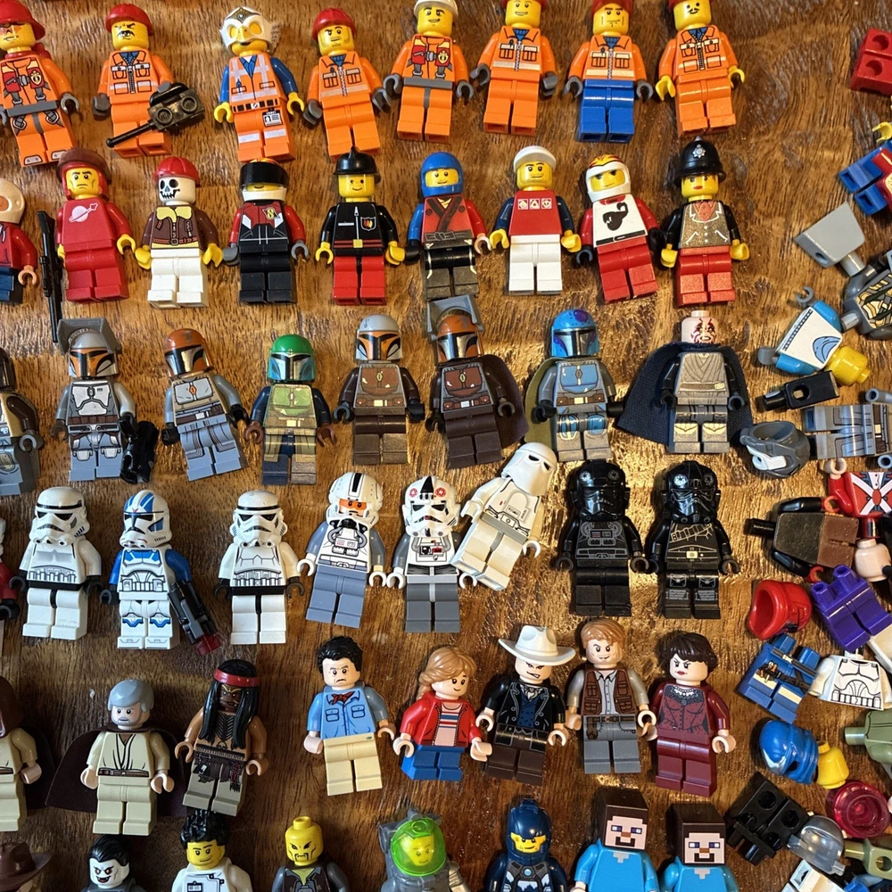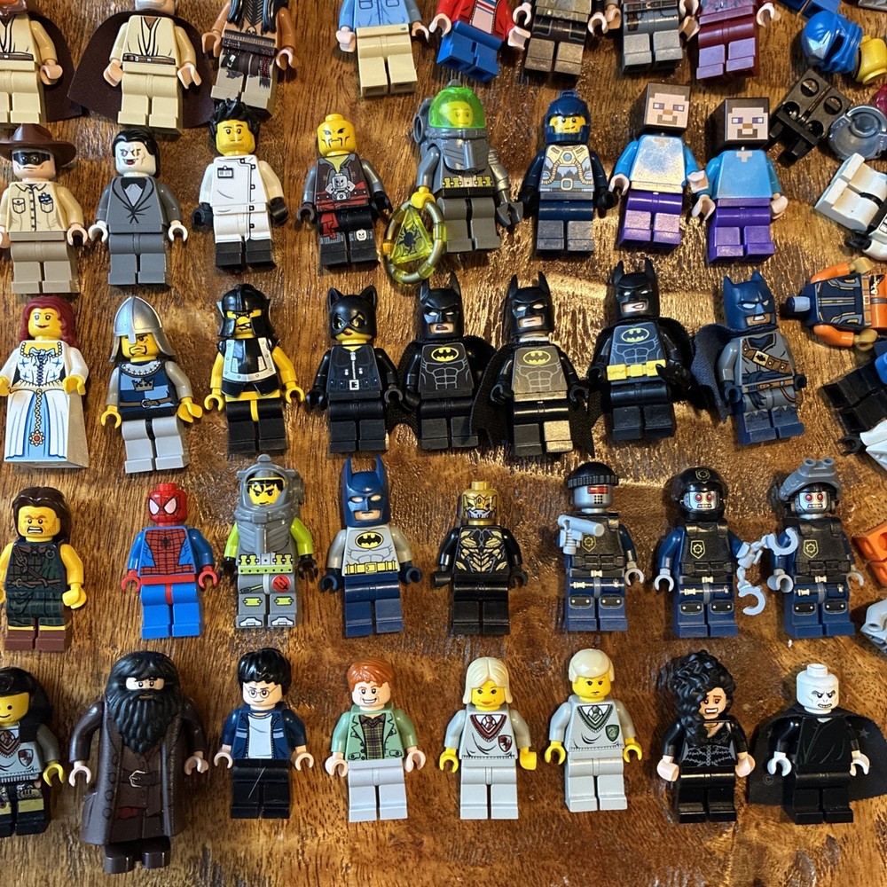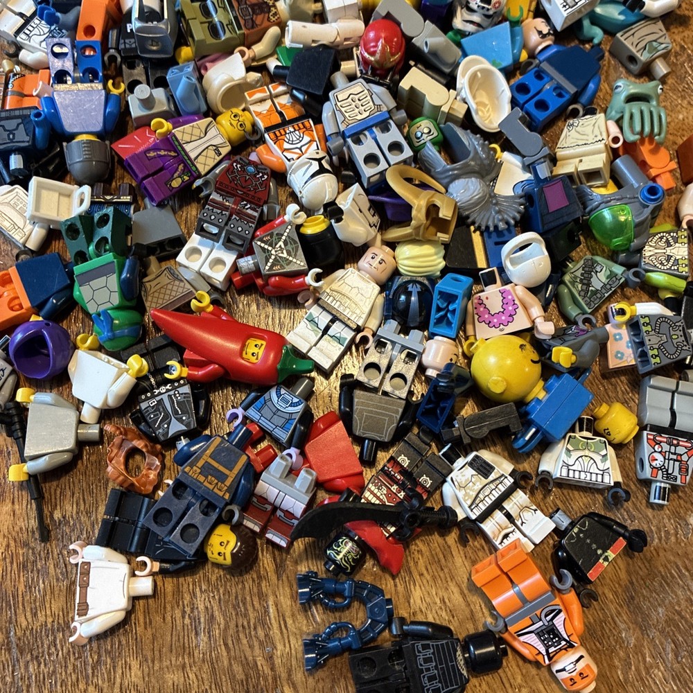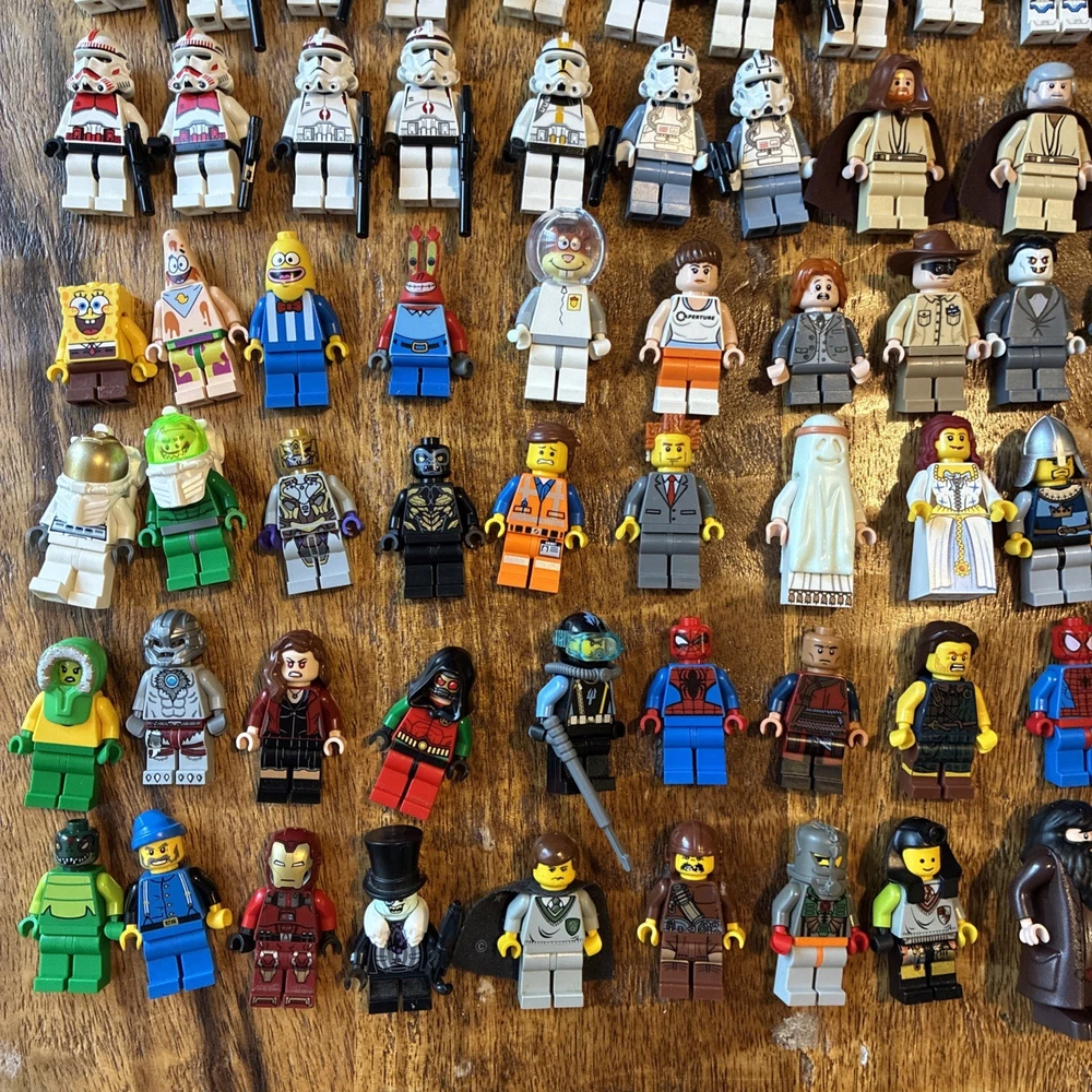 Up for auction is a Huge LEGO assorted Minifigures lot of 180 completed figs Figures are used and some may show signs of use, play, age more so than others. All non-buildable parts are removed. Includes themes like Super heroes Star Wars City Jurassic world Lone Ranger SpongeBob Harry Potter And more to mix and match! These are in generally good condition with light-normal signs of use. Including examples such as light arm cracks or torso cracks, or wear on head, most legs are in good condition as well as headgear, as most know the heads and torsos are usually put threw the ringer more. Anything too heavily damaged is separated. I do make mistakes and may have missed something hear or there but I am generally pretty thorough. Due to the size and how much is accounted for I will not accept returns on this. Please feel free to check out my other listings as well as reach out with any questions prior to bidding. I will be listing more harder to find Minifigures and parts over the next two weeks. Thanks for looking and have a blessed day!