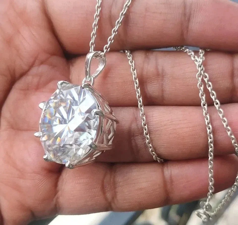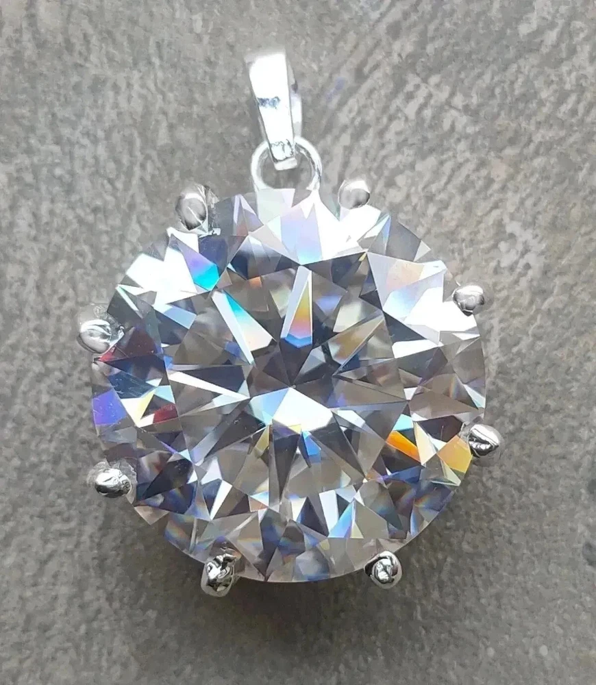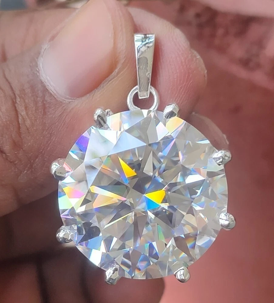 Natural Gemstone • Luxury Grade White diamond • Round Cut Metal Solid 925 Sterling Silver Specifications Gemstone White Total Carat 56 Carat Shape / Cut Round Color White Metal 925 Sterling Silver Treatment Heated & Pressure Treated Pendant Dimensions 25 MM Diamond Geological Properties These are genuine Colored Diamonds found naturally mines mainly from Brazil. They are more porous than White Diamonds and are found in the upper layers of the ground relative to the White Diamonds that are mined deep. Some scientists are of the opinion that their origin maybe a Meteor that impacted earth Billions of years ago. What is their nature? Colored Diamonds are not found in the state as they are sold. They are made from earth mined rough rock found in mines of Brazil. The Rock color varies from Light Blue, Dark Blue, Champagne, Pink, Green etc. What is the treatment process? To bring out its true color it needs to be treated. The process is a natural one employing gentle heating a high-pressure environment (HPHT) which gradually brings out the true color of the Diamond. Are any artificial colors or chemicals added? There are no artificial colors or chemicals included in the process. They are not irradiated. Does it alter the composition? The process may or may not alter the composition. It remains a true Diamond nevertheless. Once our diamonds are heat-treated, it may move the molecules. This causes them to not always test properly with a hand tester. If a hand tester is used, sometimes they test as diamonds and sometimes they test as Moissanite. But they are genuine earth mined diamonds, not Moissanite or CZ. If you use a jeweler's loop you can see this by their molecular composition. How does it differ from a Moissanite? A Moissanite is man-made whereas our Diamonds are earth-mined. A Moissanite will lose its shine and wither away in a short period whereas a Diamond will remain as they are forever. What if I have doubts about their authenticity? You can always message us in case you still want any more details or clarifications. Once purchased we will understand that you have read and understood the details about these Diamonds and thus, we will be unable to accept returns for this reason. What Guarantee do you offer? We offer full 100% Money Back Guaranteed in case of any manufacturing defect. Please also refer to the Refund Policy as mentioned our item listing. Mineral Information - Diamond Chemical Composition - Carbon (C) Color - D to J (Colorless to Near-Colorless) Hardness - 10 (Mohs Scale) Specific Gravity - 3.52 Refractive Index - 2.417 Shipping & Handling Handling Time - Orders processed within 07 business days after payment clears USA Shipping - Delivery in 07–15 business days International Shipping - Estimated 11–15 business days Payments We accept payments exclusively through Payoneer . Orders are processed only after full payment is deposited and cleared. Please ensure your Payoneer account is active and funded before purchasing. Return Policy Return Period - 30 days from delivery Condition - Must be unused, undamaged & in original packaging Refund Time - Issued within 03-07 business days after inspection Return Shipping - Buyer pays return shipping Duties & Taxes Import duties, VAT, customs fees, or any destination country taxes are the buyer’s responsibility. Please check your country’s rules before purchase. Why Buy From Earthica Natural gemstones • Transparent grading • Custom jewelry options 5★ Rated Seller Insured Shipping Expert Gemologist Support Message Us for Custom Jewelry © 2025 Earthica . All Rights Reserved. All gemstone images, product descriptions, and layout design are intellectual property of Earthica. Unauthorized copying or redistribution is strictly prohibited under international copyright law.