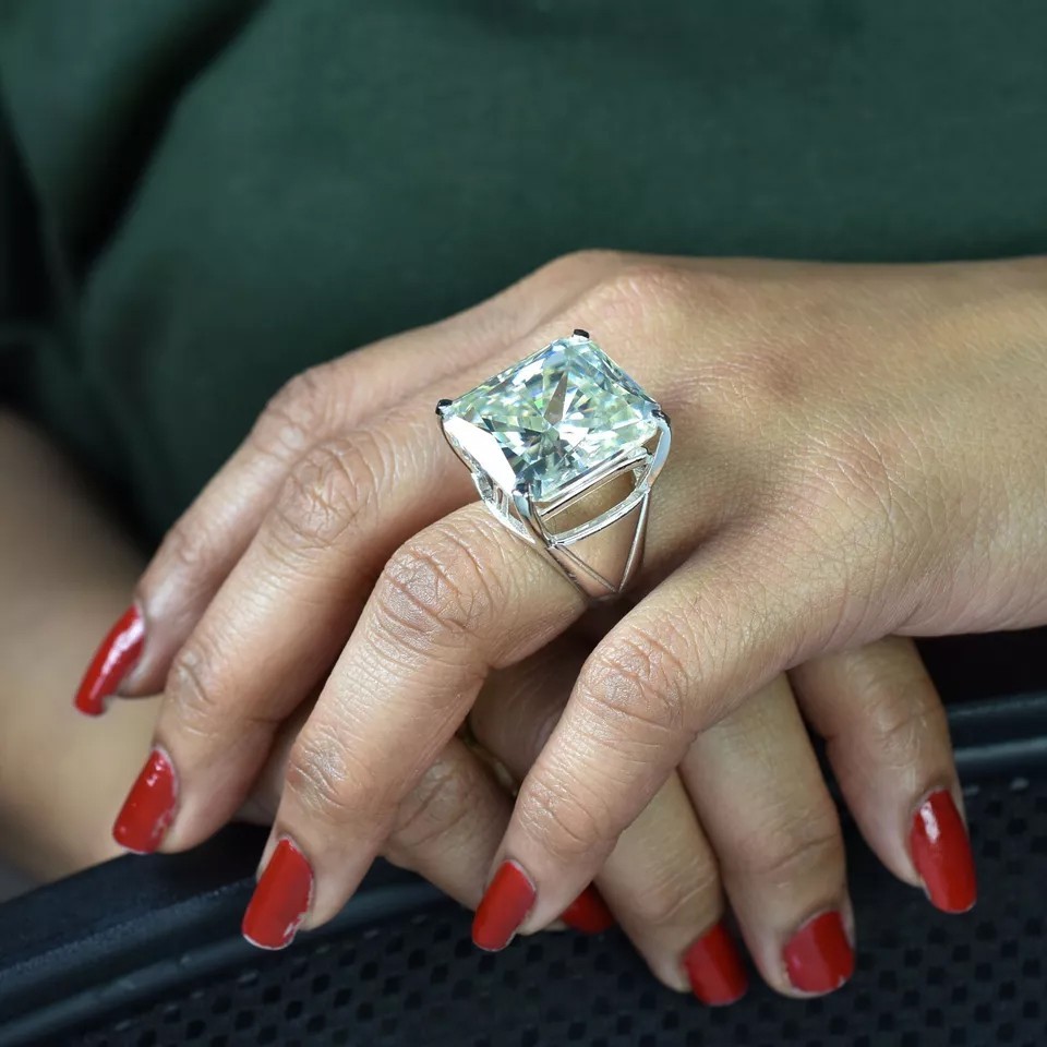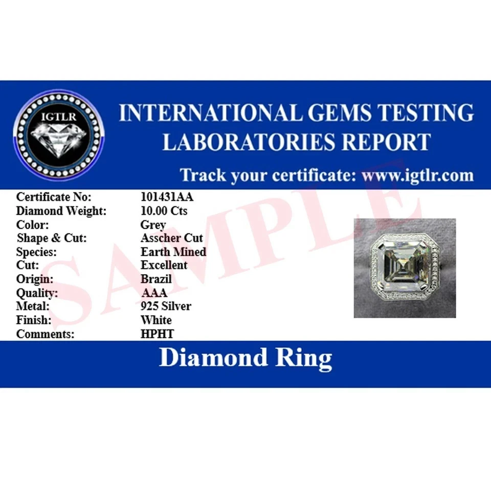 GRAY DIAMOND RING ELEGANT LOOK! GREAT SHINE! Diamond Color - Gray Shape of Diamond - Radiant Cut Approx. Weight of Diamond - 70.60 Carat Approx. Size of Diamond - 24 mm 17 mm Origin of Diamond - Brazil Species - Earth Mined Treated - HPHT Clarity - VVS1 Cut - Excellent Size of Ring – US 7 is default size - (Can be resized for additional $ 20.00 or default will be shipped) https://www.ebay.com/itm/404196768619 You can pay for resizing from the following link: Please copy and paste the above link in your browser Metal - Stamped Solid 925 Sterling Silver Finish - White Gold This diamond ring is handcrafted with utmost care. Would make an ideal gift for someone special. The diamond has excellent cut and luster. Comes in attractive packaging. CERTIFICATE OF AUTHENTICITY PROVIDED Shipping : Shipping is by UPS/SPEEDPOST/FEDEX or similar shipping agencies to reach you in 9-12 business days after processing the order. Tracking is provided. Please note: Jewelry items can take up to 10-12 business days to process to take care of ring sizing if any, polishing, finishing, packing and handling, certification, documentation etc. Shipping Charges include eBay fees on Shipping, packaging, certification costs, manpower costs, overheads, taxes etc. in addition to actual courier/postal expenses which have increased substantially as a result of pandemic & global economic conditions. We do not artificially increase the price of the products to include shipping charges but only charge what shipping actually costs us. Combined Shipping: Combined shipping discount is available up to 5 (Five)items in an order to be purchased within 5 days. You can continue to buy- Any additional items above 5 in quantity will be considered a new order. This is to avoid pilferage en-route as well as to ensure that you are happy with the merchandise. Once you have received their items you may buy additional items again. This limit may be revised for repeat and regular customers. Payment: Buyers are requested to pay within 3 (Three) days of purchases. eBay will automatically open unpaid item cases in case payment is not received within this period. The item will also be available for purchase to other buyers till such time that the payment is received. Customs and Taxes: Any customs duties, charges and local taxes are subject to local laws and vary from country to country and hence the payment of any eventual custom duties, charges, levies and taxes etc will be at the buyer's expense. We do not have any control on the same. Returns & Refunds: You can return the item within 14 days of receiving the parcel. - Please return in original packing. Buyers are required to check and ensure that the item/s are in good condition and as per item listing on eBay as no claims for returns and refunds will be entertained thereafter. The returned item should be unused and in original and undamaged condition. Buyer will be required to ensure that the item is sent by trackable shipper. Shipping charges are non-refundable. Refunds are made by PayPal and may take up to 5-7days after receiving back the product/s. Disputes: We aim to settle all disputes amicably. Please do not open any dispute on eBay for dis-satisfaction or for non-receipt or to return an item. We are available through ebay messages system and most messages are replied in a few hours. Personalized satisfaction is of utmost importance to us. Feedback : We always provide excellent feedback to our buyers and expect the same in return with 5-star ratings. In case of any dissatisfaction or any other reason please do contact us before leaving any neutral or negative feedback - we will strive our best to resolve all issues to your satisfaction. Metal : Silver is 925 Sterling Silver with Nickel Free Rhodium Plating. Please refrain from buying if you have allergic reaction to metals. We will not be responsible for any health problems in this regard. Legal Disclaimer : Refund or any claim liability for the buyer is only limited to the value of the item purchased. No additional claims will be entertained for any other reason whatsoever. Please note that since various labs may have different testing methods and the interpretation of all our Diamonds and Stones may differ from one lab to another as well as from one Gemologist, appraiser and Jeweler to another, we will be unable to accept another Lab Certificate or the judgement of any other third party including any Gemologist, appraiser, Lab, Jeweler etc. By consenting to buy our items it is understood that you have read, understood and agree to the terms and conditions as well as the FAQ for the Diamonds and Jewelry being sold buys. FAQ What are Color Diamonds? These are genuine Colored Diamonds found naturally mines mainly from Brazil. They are more porous than White Diamonds and are found in the upper layers of the ground relative to the White Diamonds that are mined deep. Some scientists are of the opinion that their origin maybe a Meteor that impacted earth Billions of years ago. What is their nature? Colored Diamonds are not found in the state as they are sold. They are made from earth mined rough rock found in mines of Brazil. The Rock color varies from Light Blue, Dark Blue, Champagne, Pink, Green etc. What is the treatment process? To bring out its true color it needs to be treated. The process is a natural one employing gentle heating a high-pressure environment (HPHT) which gradually brings out the true color of the Diamond. Are any artificial colors or chemicals added? There are no artificial colors or chemicals included in the process. They are not irradiated. Does it alter the composition? The process may or may not alter the composition. It remains a true Diamond nevertheless. Once our diamonds are heat-treated, it may move the molecules. This causes them to not always test properly with a hand tester. If a hand tester is used, sometimes they test as diamonds and sometimes they test as moissanites. But they are genuine earth mined d