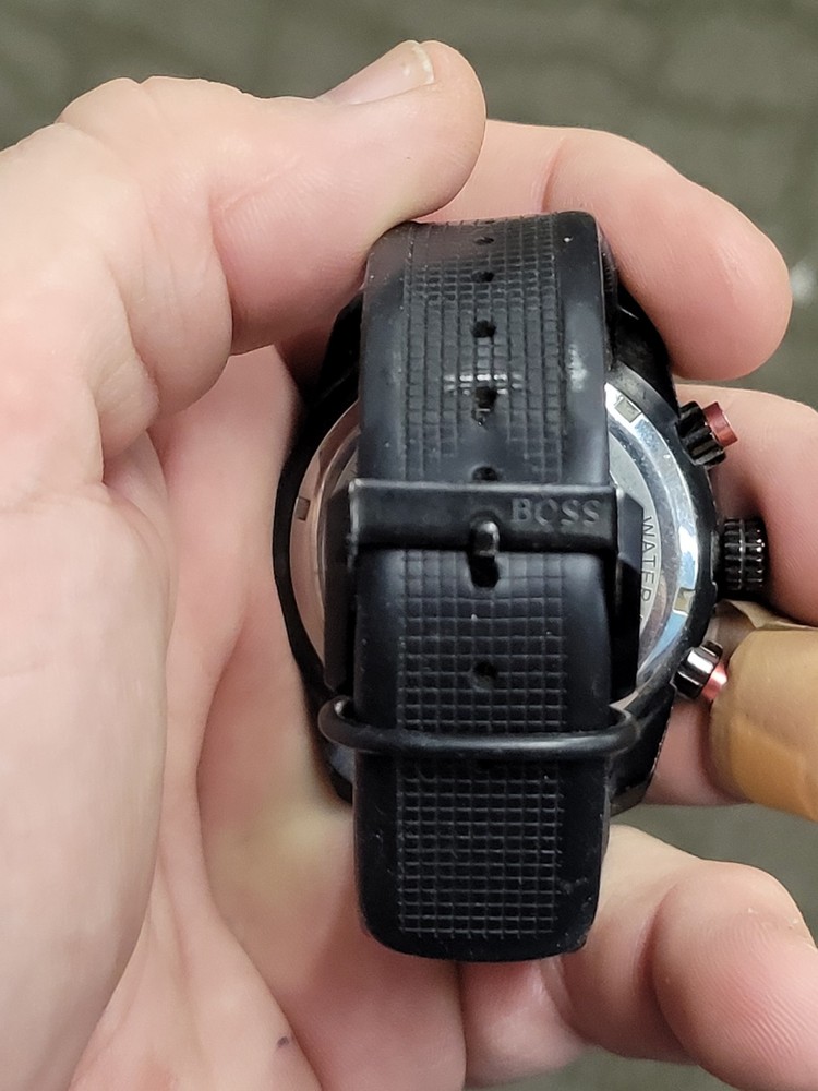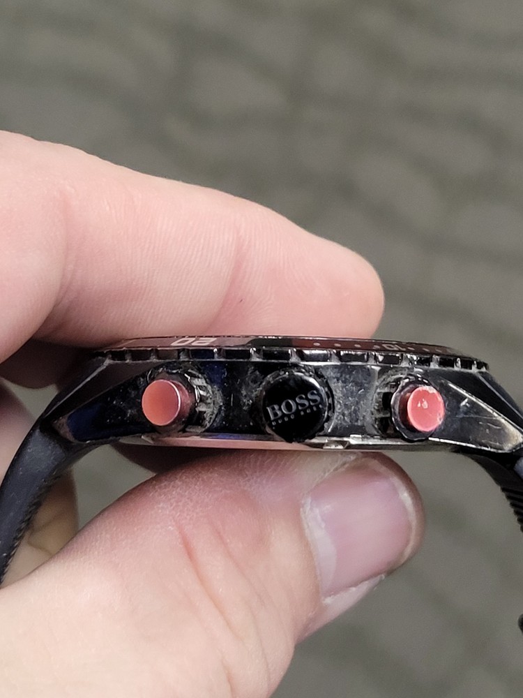 Complications: Alarm Chronograph Type: Chronograph Warranty: Factory Warranty With Manual/Booklet: No Bezel Type: Fixed UPC: Does not apply Handmade: No Brand: HUGO BOSS Band/Strap: Two-Piece Strap Movement: Quartz Customized: No Display: Analog Vintage: No Type: Wristwatch Seller Warranty: No With Service Records: No With Original Box/Packaging: No With Papers: No Case Size: 46 mm Reference Number: 1512661 Dial Color: Black Department: Men Features: Alarm, Chronograph, Water Resistant, Date Closure: Buckle Case Finish: Polished Band Color: Black Case Material: Stainless Steel Watch Shape: Round Band Material: Rubber Country of Origin: Japan gtin13: Does not apply