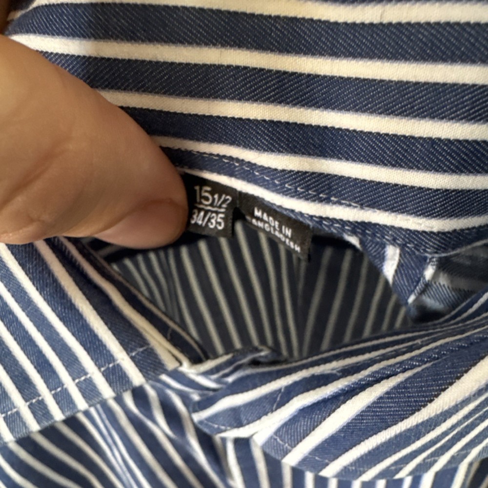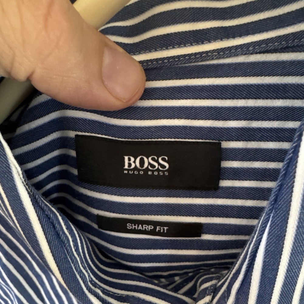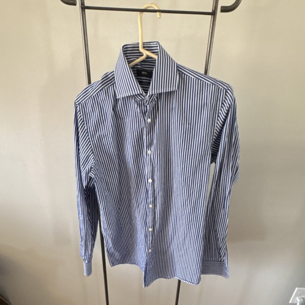 HUGO BOSS Men's Dress Shirt Sharp Fit Striped Blue White 15.5 34/35