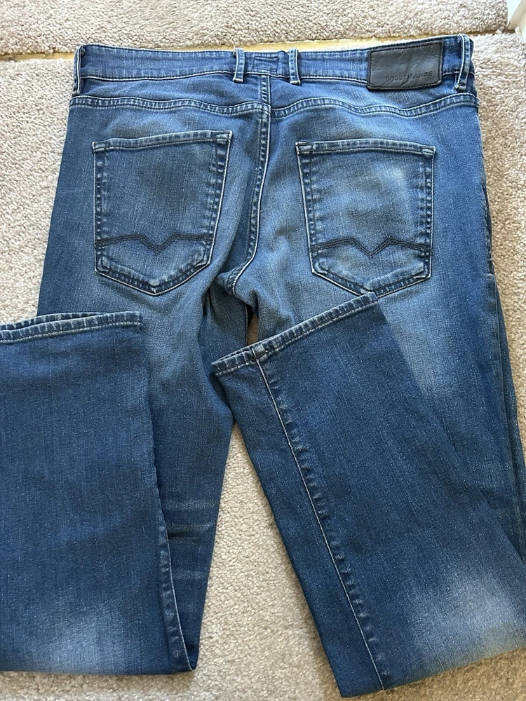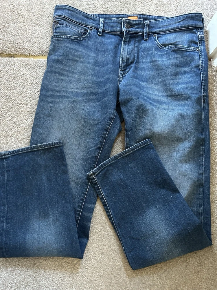Brand: HUGO BOSS Garment Care: Machine Washable Size Type: Regular Leg Style: Straight Colour: Blue Features: Pockets Vintage: No Size: 34 gtin13: N/A Theme: Classic Department: Men Model: HUGO BOSS ORANGE 24 Waist Size: 34 in Season: Autumn, Spring, Summer, Winter Fit: Regular Fabric Wash: Medium Closure: Zip EAN: N/A Type: Jeans Rise: Mid (10-12 in) Inside Leg: 30 in Style: Straight Material: 100% Cotton Fabric Type: Denim