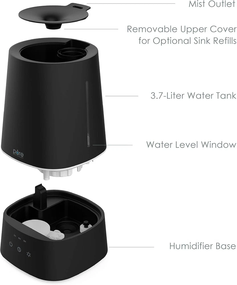 1. This humidifier is a game-changer! The top-fill design makes refilling super easy and mess-free—just pour water straight in. The huge 1-gallon tank means fewer refills, and the three mist settings let you customize humidity perfectly. It runs up to 30 hours on low, keeping the air comfortably moist. Love the built-in water window—no more guessing or overfilling. Works quietly, looks sleek, and really helps with dry air. Highly recommend!