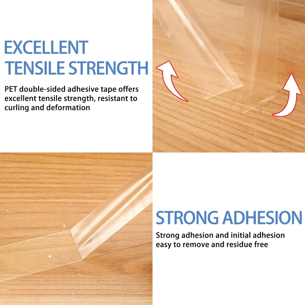 DOUBLE SIDED TAPE DATA: The 9495LE from the 300LSE series, an ultra-thin adhesive tape measuring just 0.17mm in thickness, 10mm in width, and a length of 45ft (13.75m). This PET tape offers long-term temperature resistance up to 90°C and short-term temperature resistance up to 149°C WIDELY USE: This heavy duty double sided tape tape with robust adhesion, perfect for a myriad of uses including scrapbooking, package wrapping, arts and crafts endeavors, picture hanging, as well as poster and LED light strip installations. It’s also particularly suited for DIY automotive decoration, prototype component fabrication, or electronic equipment repair MULTIPURPOSE STICKY MOUNTING TAPE: This mounting tape providing high bonding strength to most surface materials including plastic, metal, leather, rubber, glass, painted surfaces, etc. and it’s easy to remove without leaving any residue or damage HOW TO USE THE TAPE: Before using this clear double sided tape, ensure that the surface is clean, dry, and free of oil or dust. Cut the desired length of tape and gently press it onto the surfaces to be bonded, ensuring full contact. Optimal bonding strength is achieved after approximately 24 hours (bonding strength reaches 90% after 24 hours) INVISIBLE TAPE: With transparent design, the tape leaves no visible traces when used, maintaining a clean and neat surface. It can be widely used in homes, classrooms, studios, and other settings